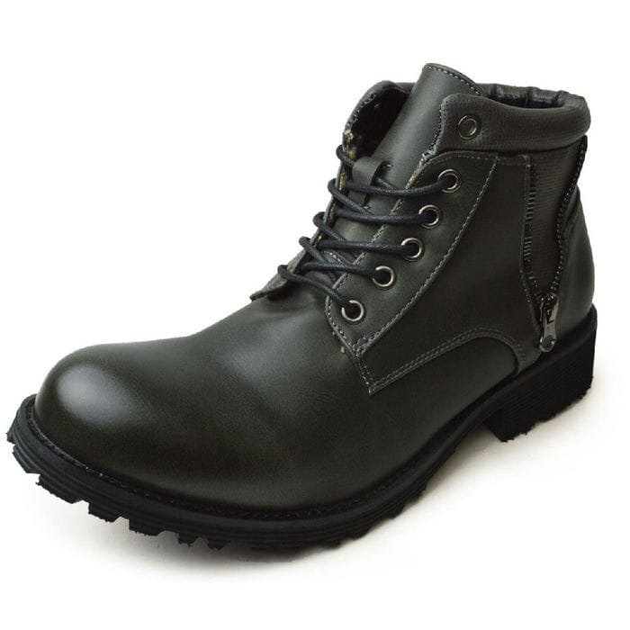 メンズ 防水 編み上げ ショート ブーツ 防寒 裏起毛 ワークブーツ チェック柄 カジュアル レイン シューズ 靴 imb8894