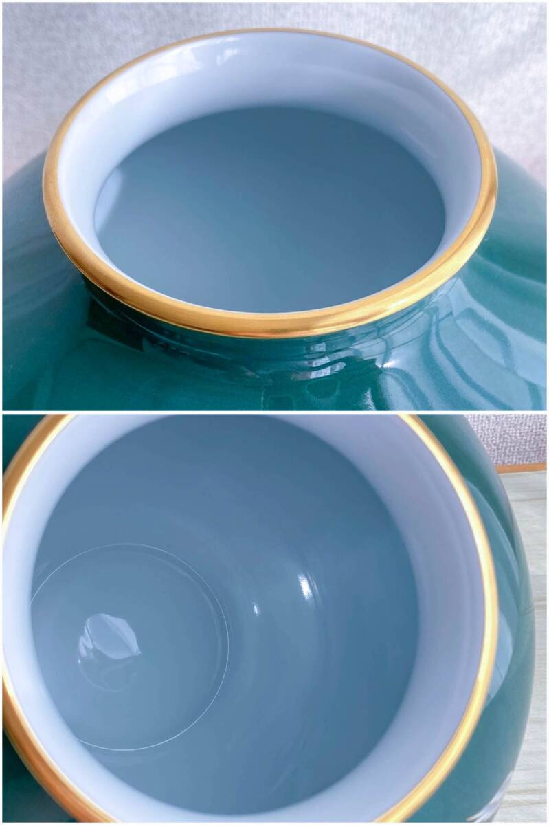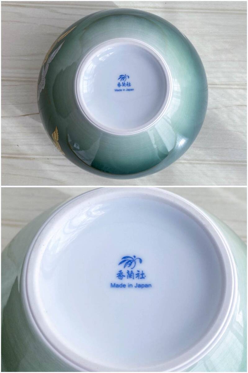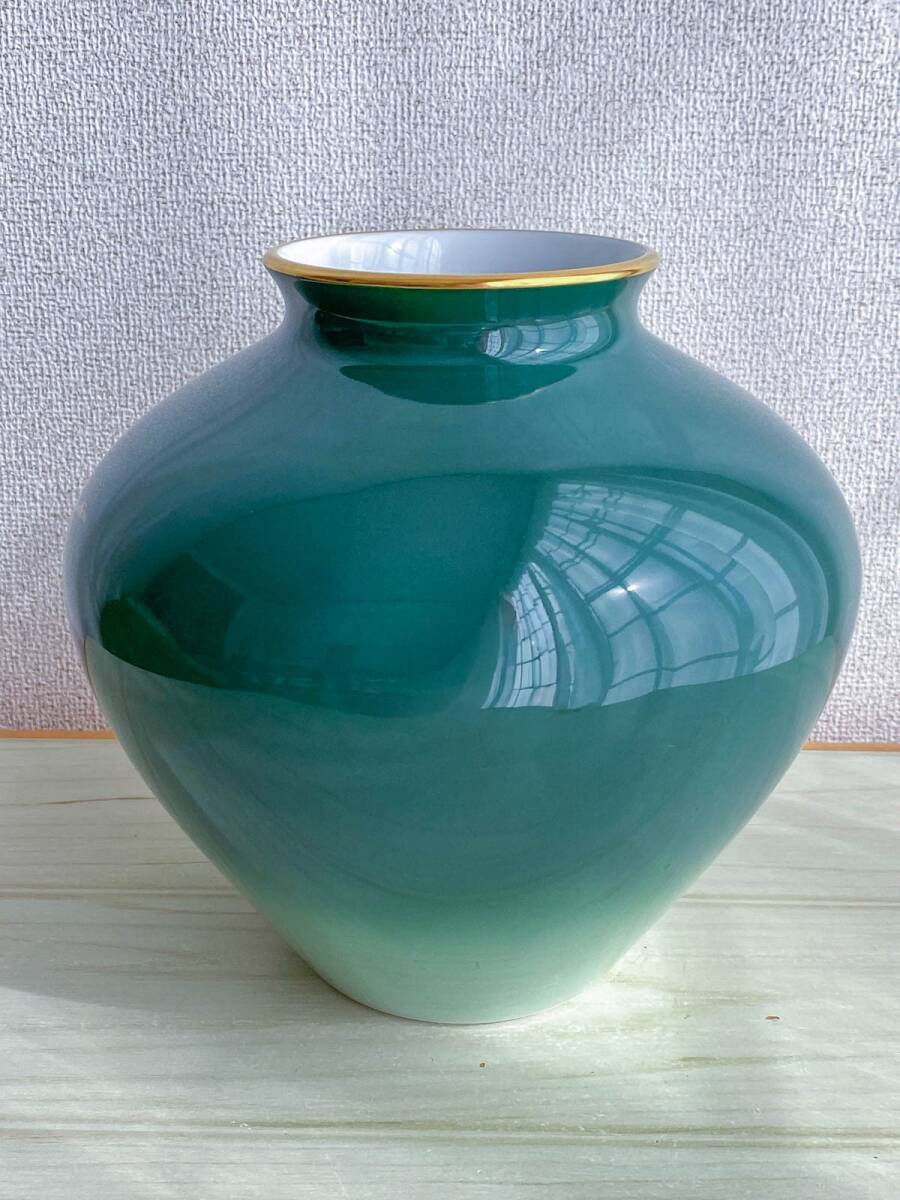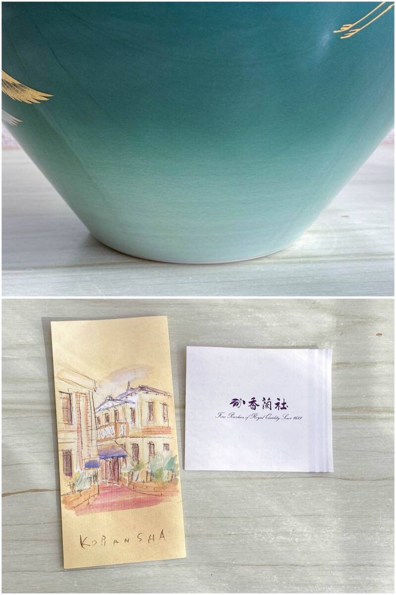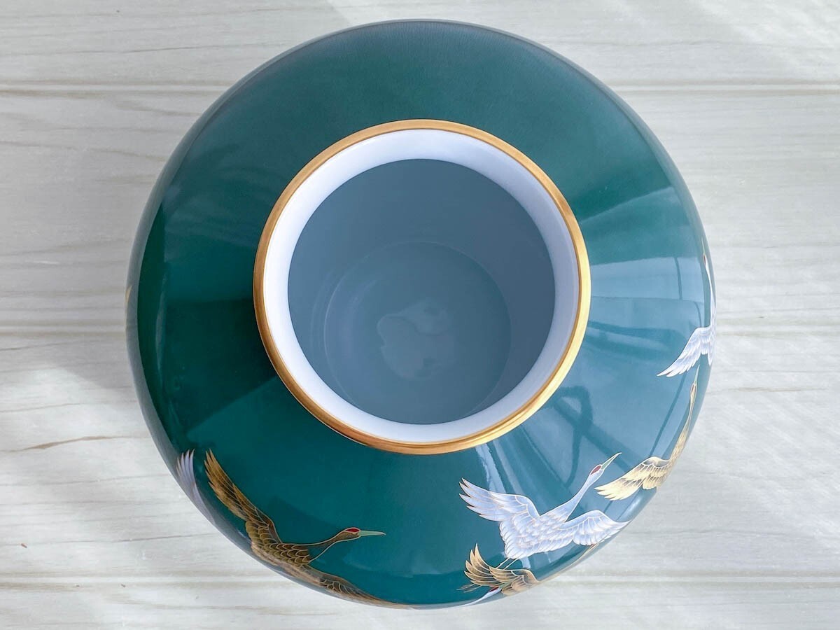 有田焼の老舗、香蘭社製の花瓶です。「鶴の舞」と呼ばれる意匠で、金、緑、銀、白の色鮮やかな金彩鶴絵が豪華な雰囲気を醸し出しています。