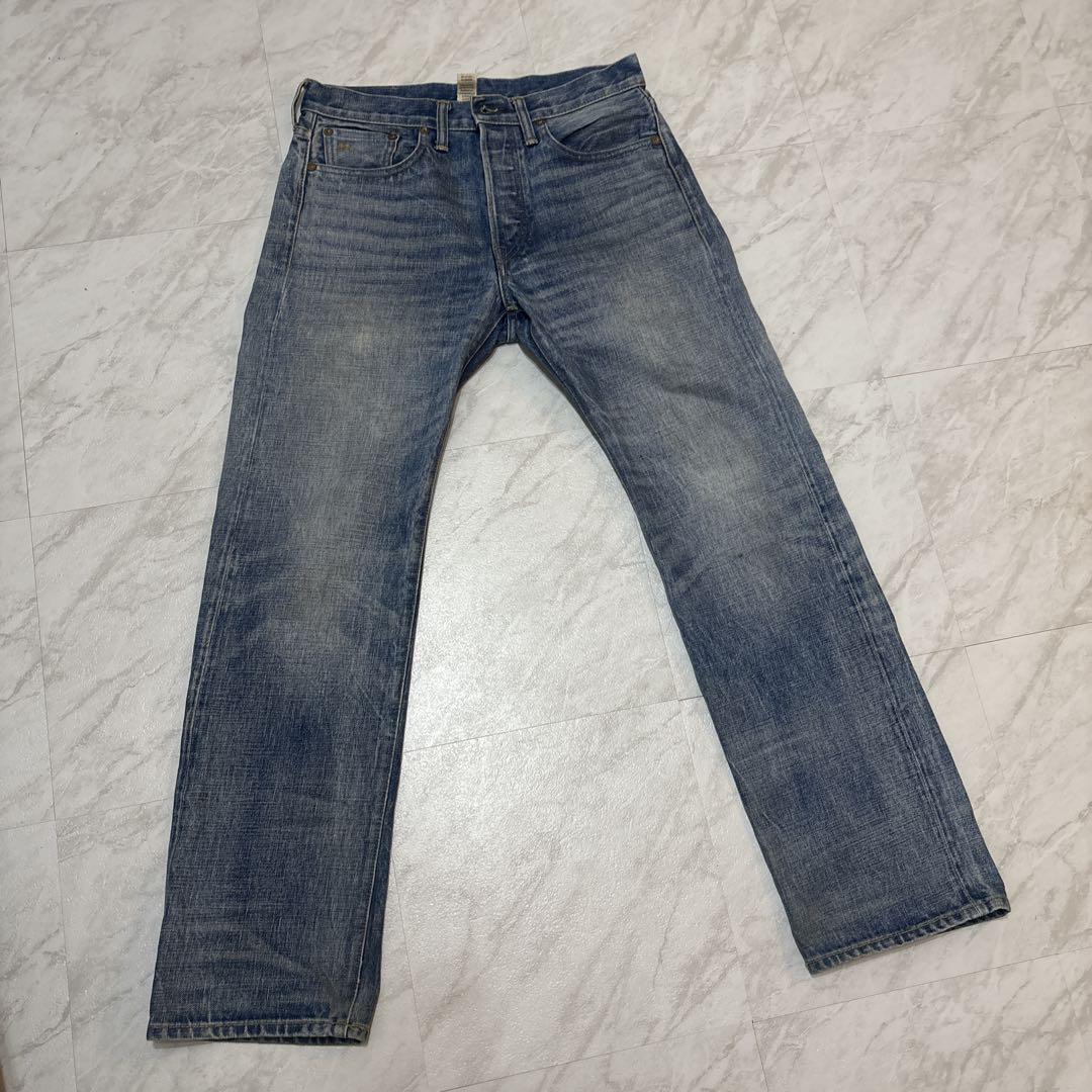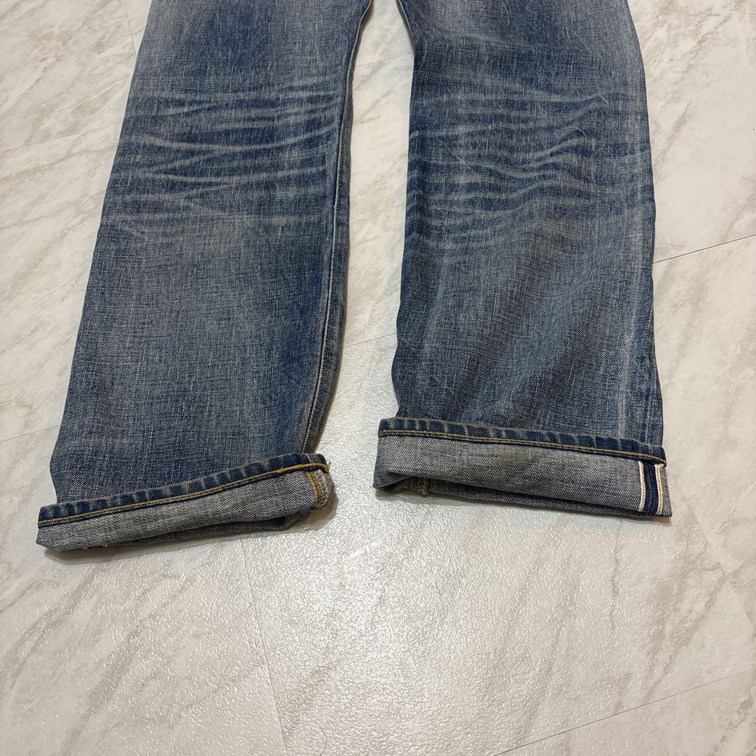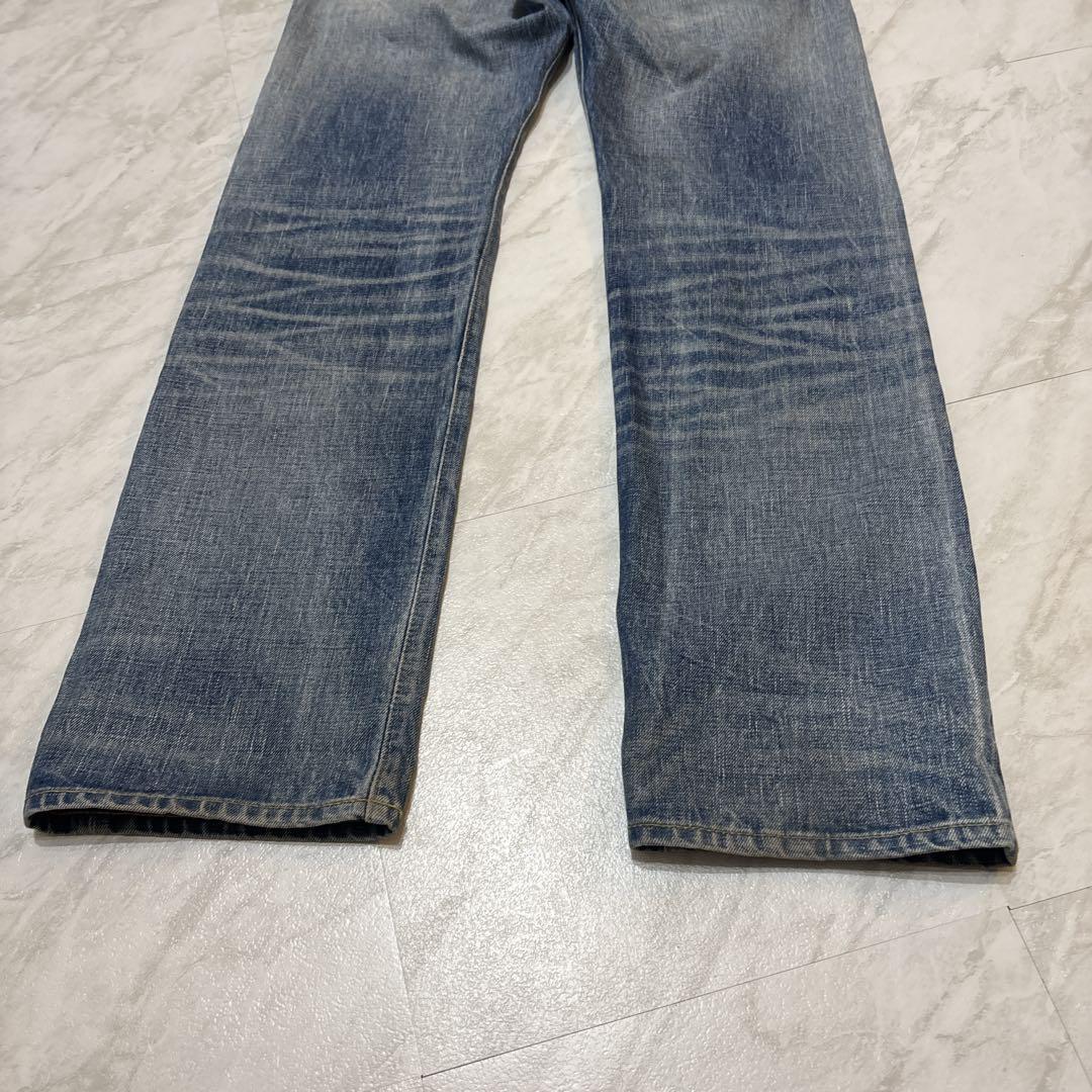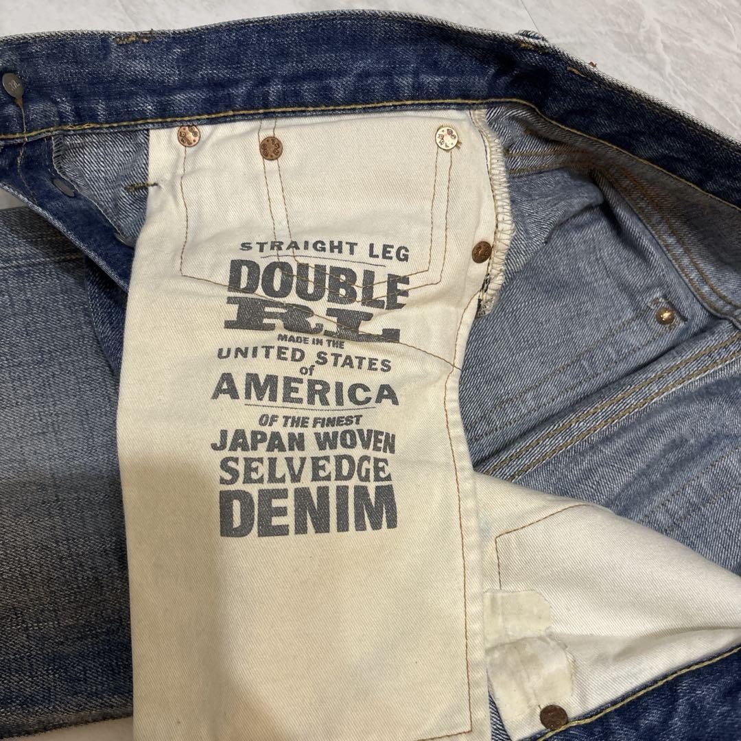 希少 RRL ストレート30 セルビッチ ジーンズ Vステッチ オフセット ヴィンテージ加工 革パッチ チェーンステッチ ボタンフライ デニム デニムパンツ ヒゲ ハチノス 加工 ユーズド加工 ダメージ加工 チェーンステッチ 黒カン ダブルアールエル ラルフローレン