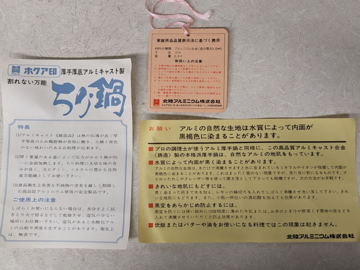 ii733■ホクア印 ちり鍋 デラックス 2点セット 18cm アルミ削り出し 一人用 一人鍋/80