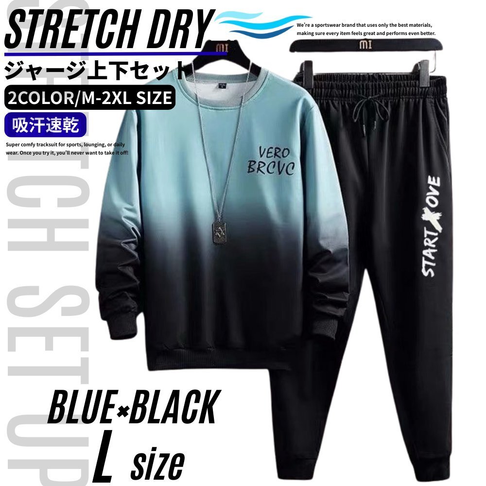 セットアップ上下 メンズ ルームウェア スポーツウェア ジャージ上下 長袖 長ズボン 速乾 通気性 シワになりにくい ブルー L