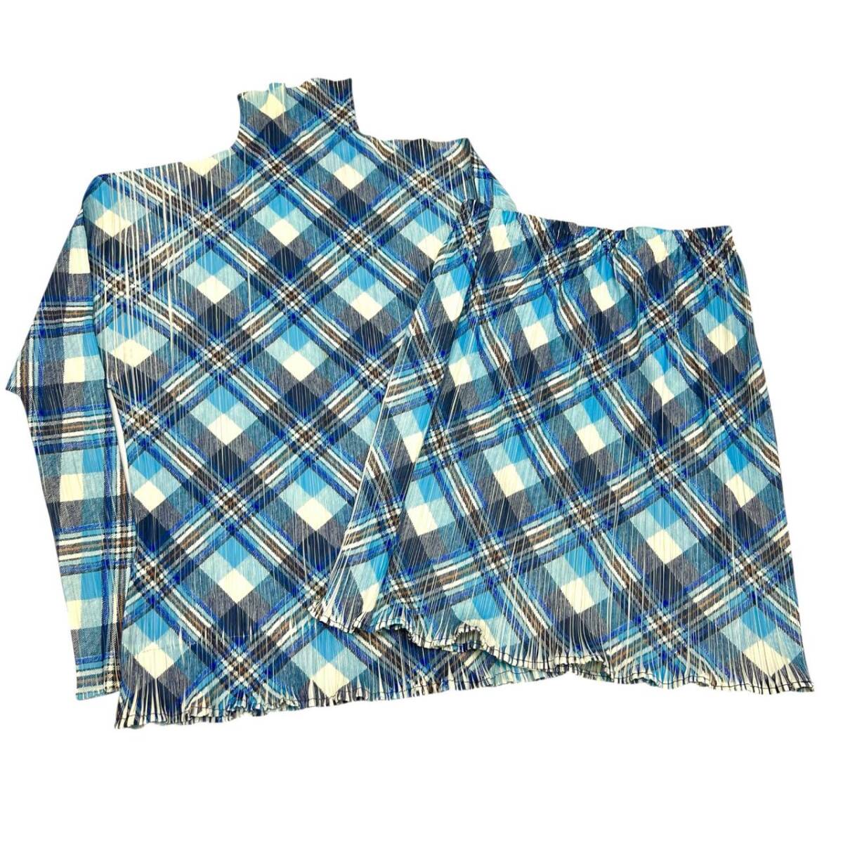 ISSEY MIYAKE イッセイミヤケ プリーツプリーズ 総柄 トップス スカート ブルー系 PP52-JK6043 PP52-JG637 ※補修あり セットアップ |
