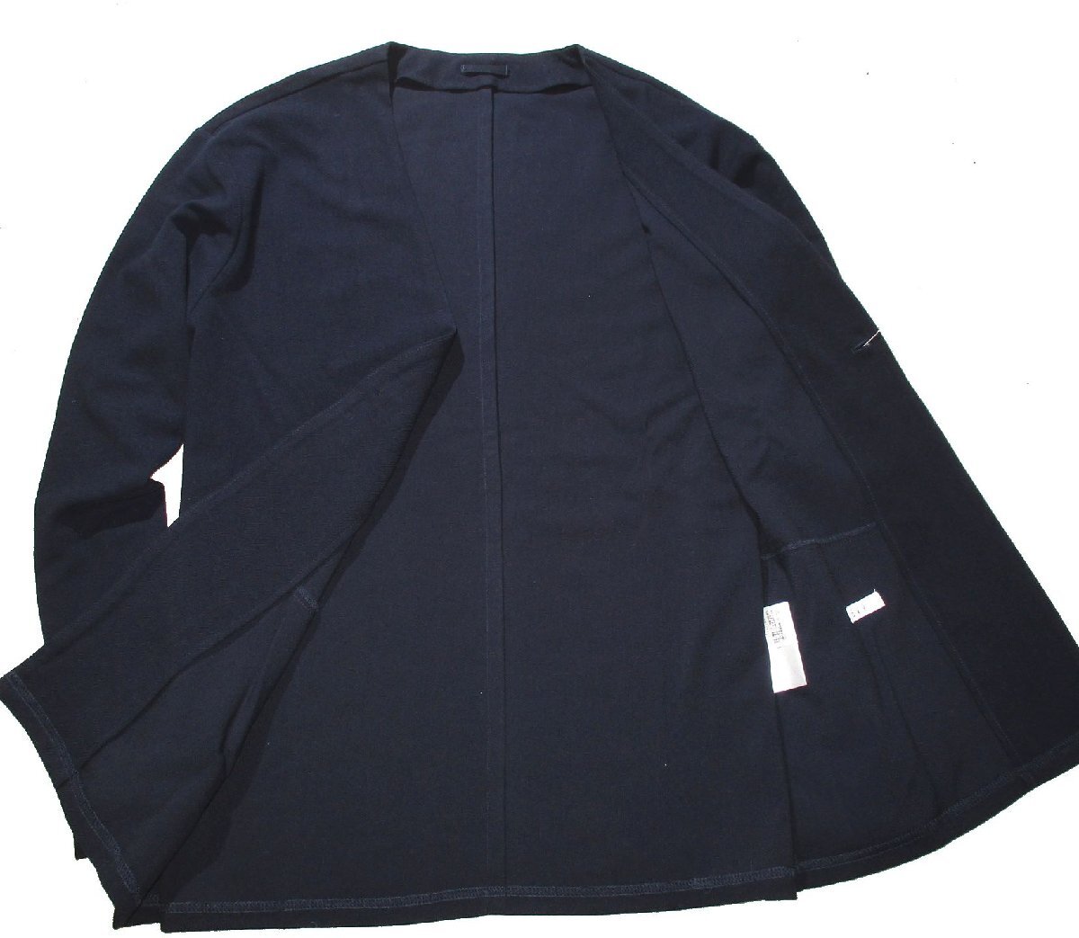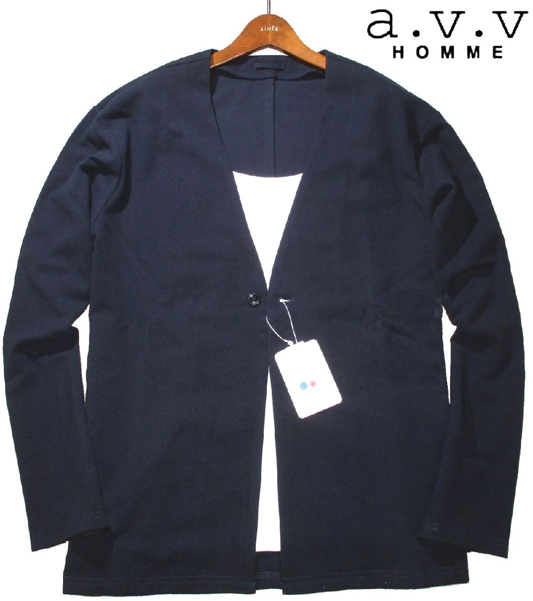 新品ラス1 秋物 XL ▼ a.v.v Homme アーヴェーヴェーオム 微起毛 ノーカラー ストレッチ テーラードジャケット ジャーディガン ネイビー 紺
