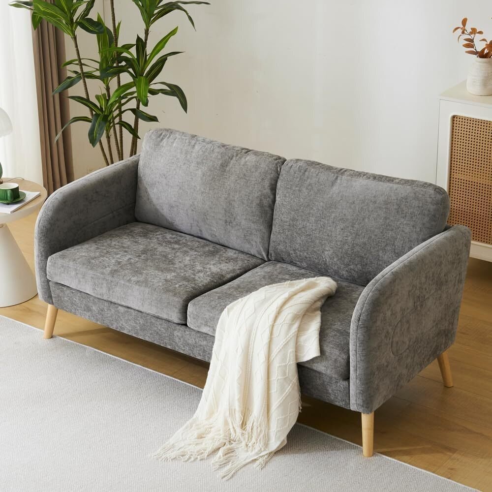 大好評☆ソファー 2人掛け 脚付き 肘付き 1人用にも おしゃれ かわいい (グレー)
