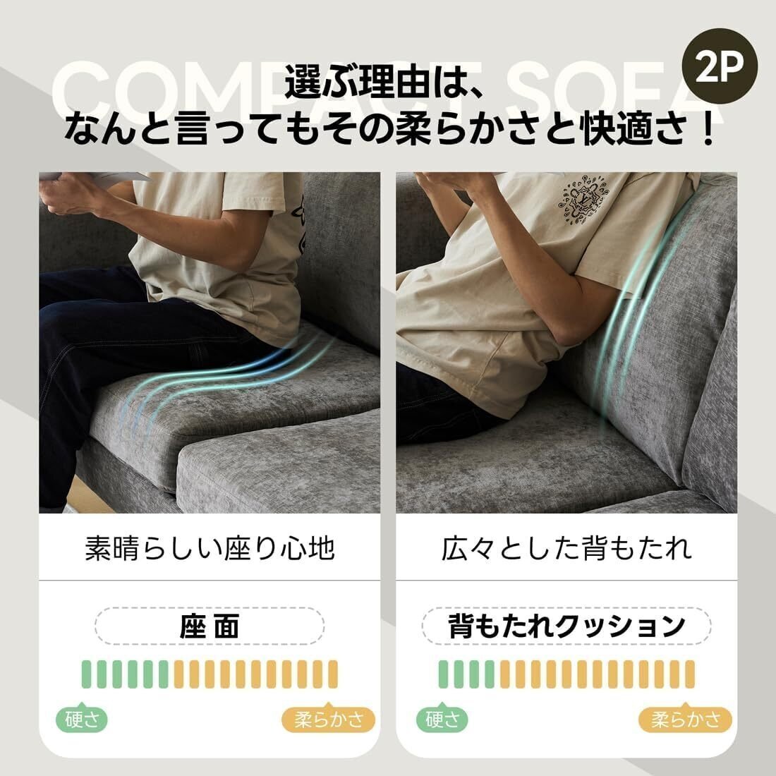 【広い座席スペース】ソファには広々とした座席スペースが設計されており、身体を快適に伸ばすことができます。
