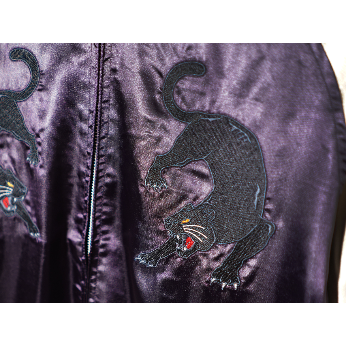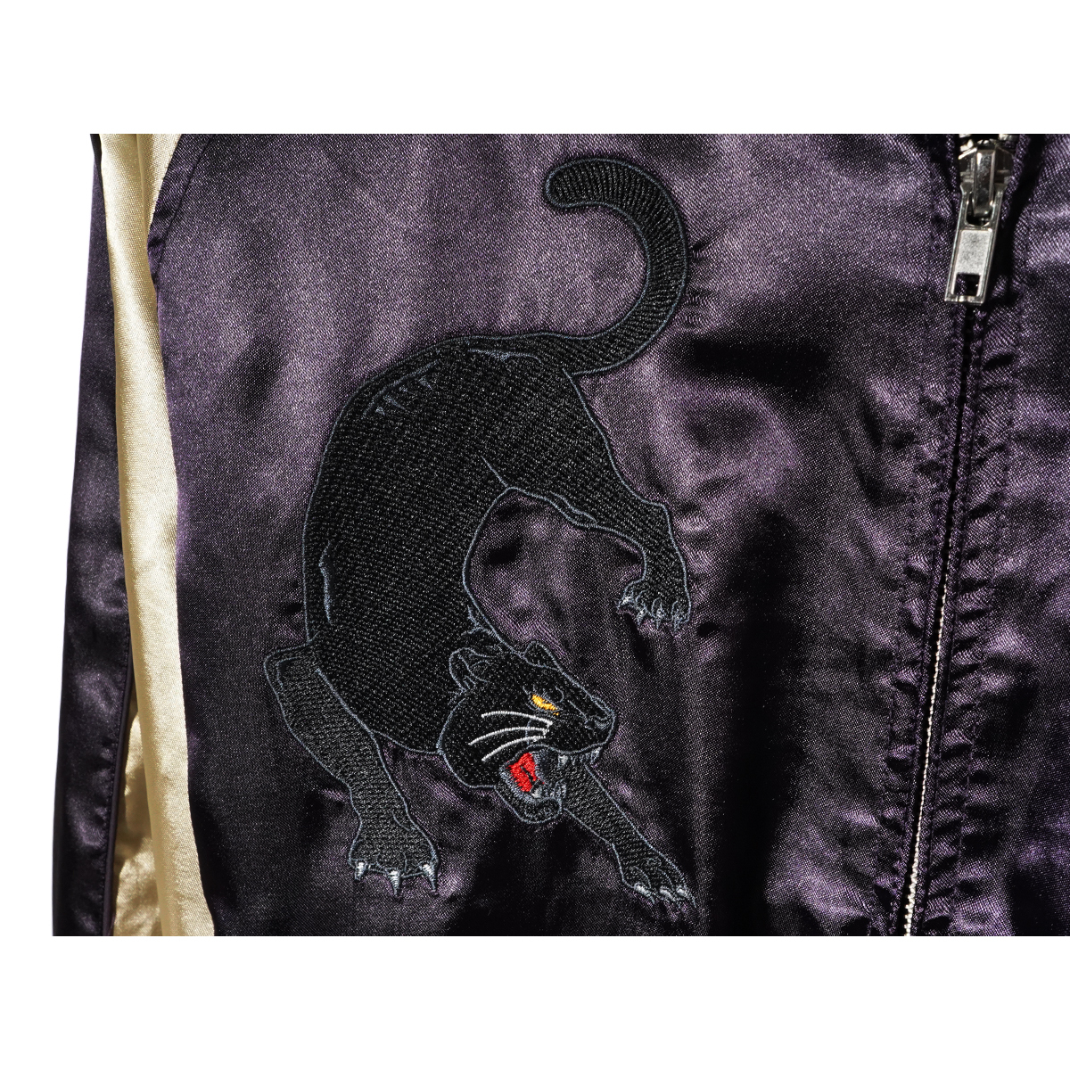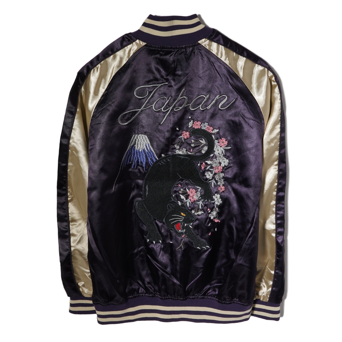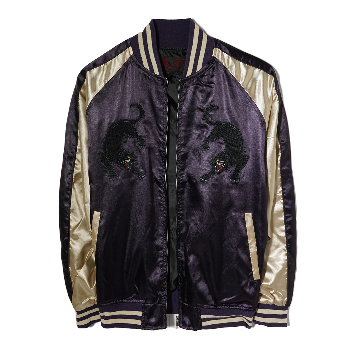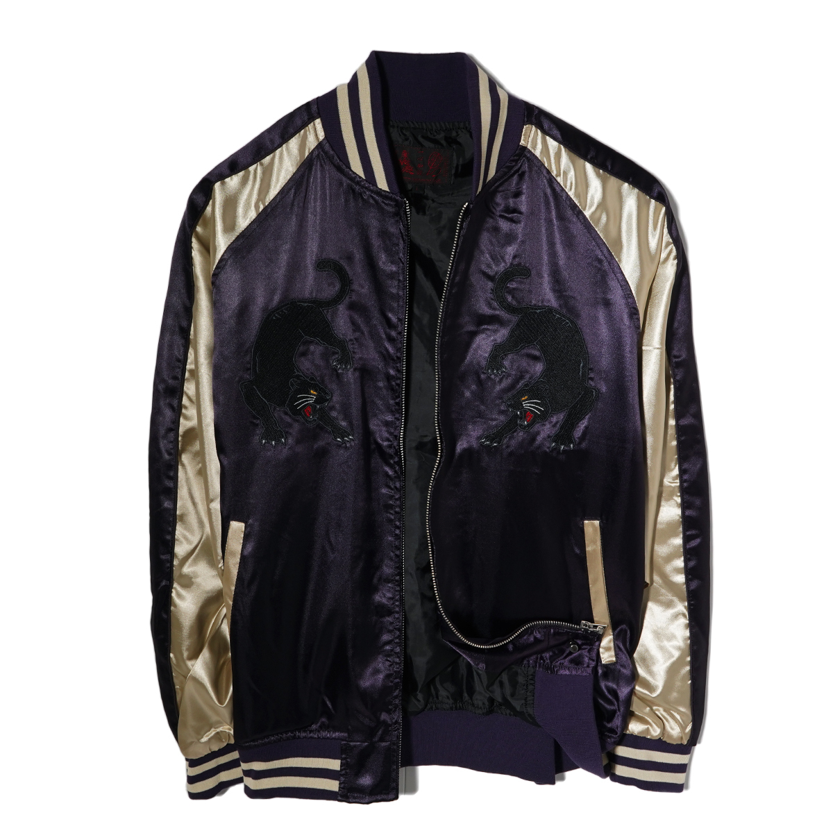 さらりと羽織れるストリート定番スカジャン。 程よい厚さとサラッとした高級感のあるサテン生地、 フロントとバックに施された丁寧な刺繍使いがポイントで、アメカジでは定番のスカジャンを現代っぽくタイトなサイズ感に。 ボディはカラー配色切り替えで仕上げた大人っぽさのあるデザインなど凝ったディティール。 これからの時期に最適、ライトアウターとして活躍してくれる1着。 左胸内側裏ポケットあり、中綿ナシ。 【カラー◆Color】 黒豹 / PURPLE 【サイズ◆Size】 S 【寸法◆Size】 S size : 身幅51cm 肩幅(ラグランにより数値なし) 着丈59cm 裄丈80cm M size : 身幅53cm 肩幅(ラグランにより数値なし) 着丈61cm 裄丈82cm L size : 身幅55cm 肩幅(ラグランにより数値なし) 着丈63cm 裄丈84cm XL size : 身幅57cm 肩幅(ラグランにより数値なし) 着丈65cm 裄丈86cm 【素材◆Material】 ポリエステル 100% ※現物に近いカラーに撮影しておりますがモニターカラー設定、または印象によりカラー誤差があることをご理解よろしくお願い致します。 | ||