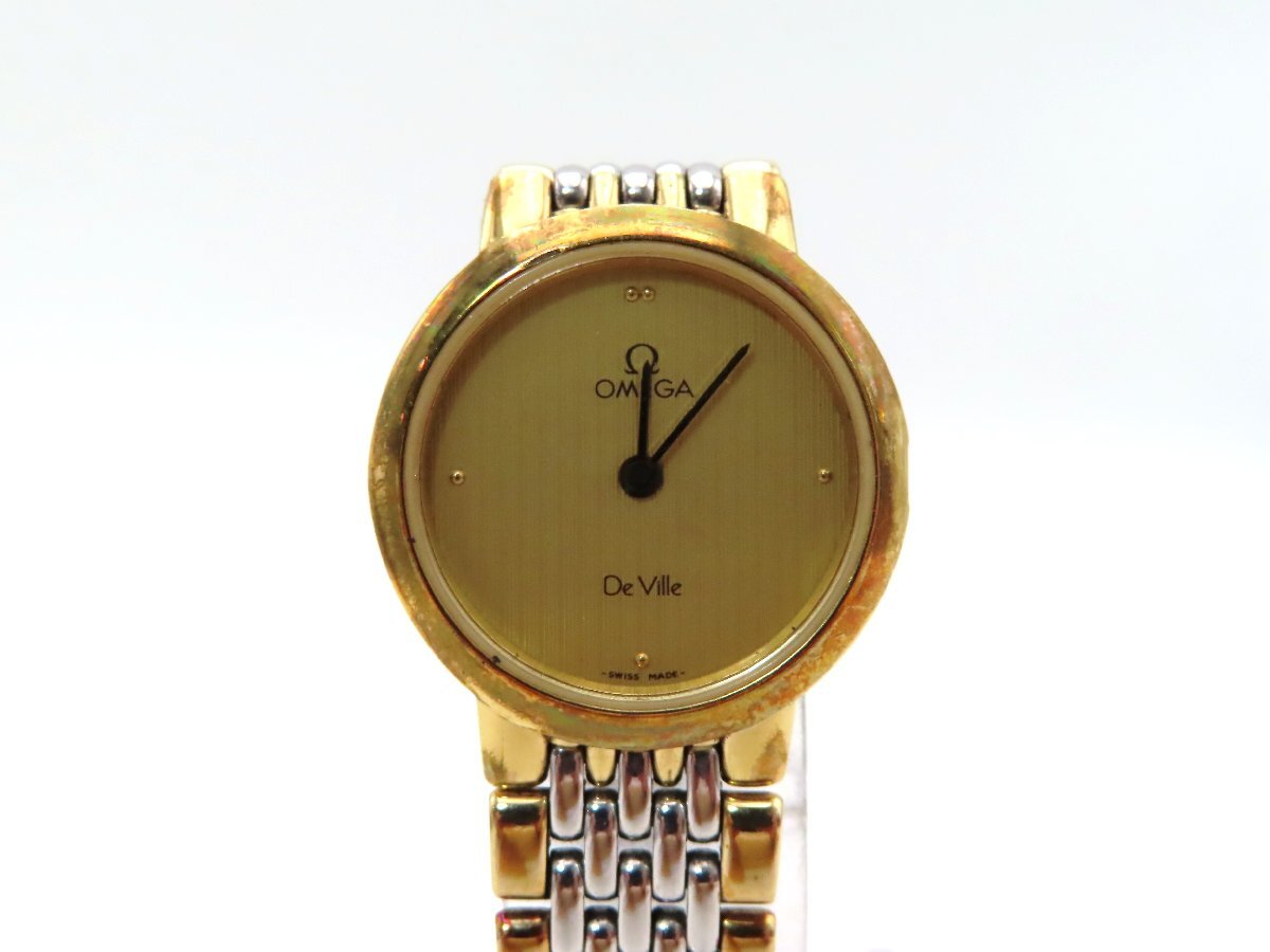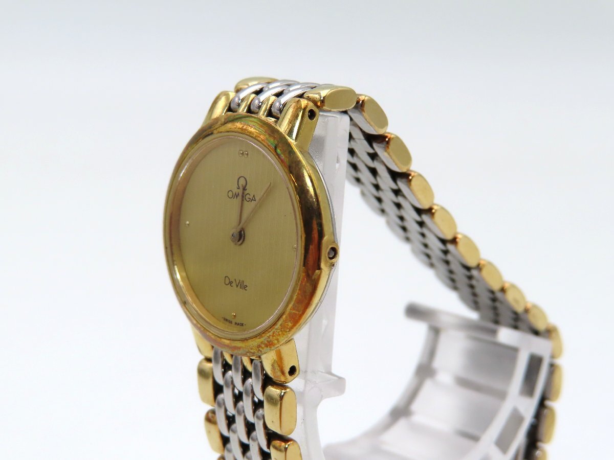 1円 オメガ デビル SS/GP シャンパン文字盤 レディース 不動 QZ コマ 25976 PRS