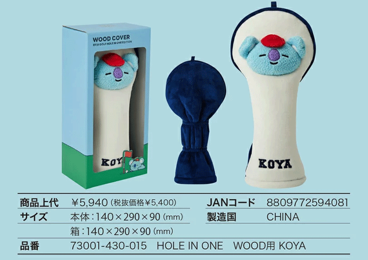 【商品特徴】 <BT21ゴルフアイテム 「ホールインワン」シリーズ!> ■キャディバッグに注目を集めるスペシャルアイテム 愛らしいBT21の仲間たちが、成功したラウンディングをいつでもお祝いしてくれます。 ■シンプルかつ洗練されたシルエット 柔らかいポリエステル素材で、外部からの衝撃からクラブをしっかり保護します。 【商品詳細】 ●状態:新品・未使用品 ●材質:ポリエステル ●タイプ:フェアウェイウッド用 ●サイズ:140×290×90mm ※特殊なヘッド形状の場合は、装着できないことがございます。 ※撮影時の光量の具合や、ご覧いただいております画面環境によりまして、実際の商品と若干色味が違う場合がございます。 ※商品詳細のスペック値はメーカー表記の数値となりますが、個体差による若干の公差がございます。