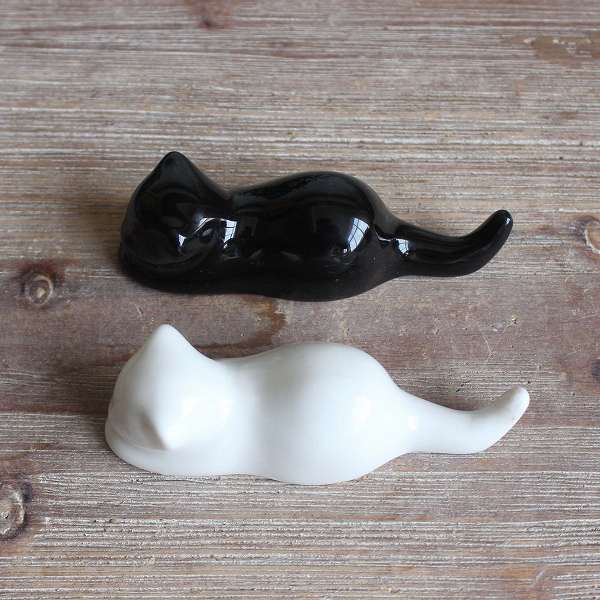 「a8b-a2」 白黒猫 箸置き 2点セット かわいい 和 食器 インテリア 箸おき 卓上小物