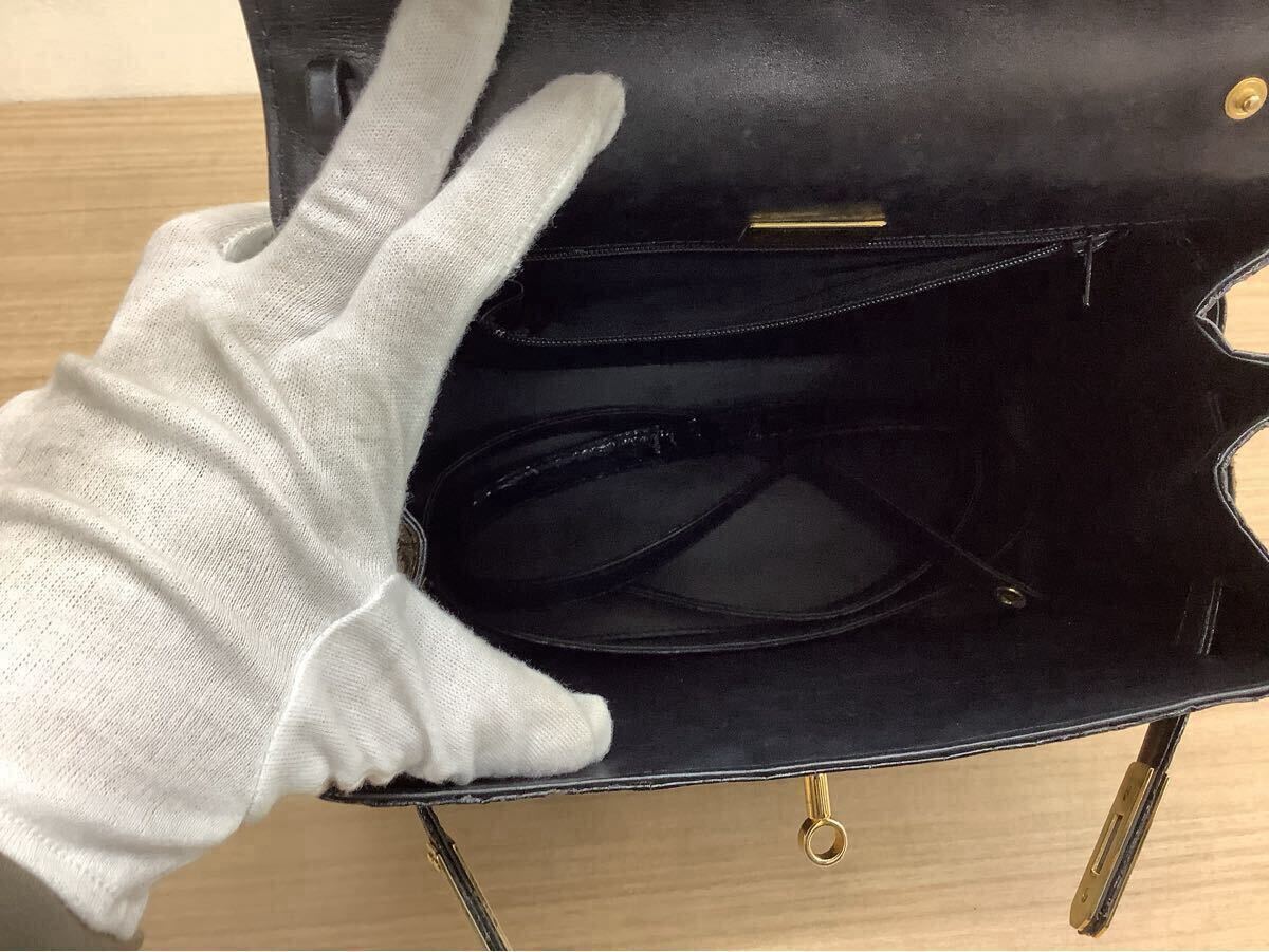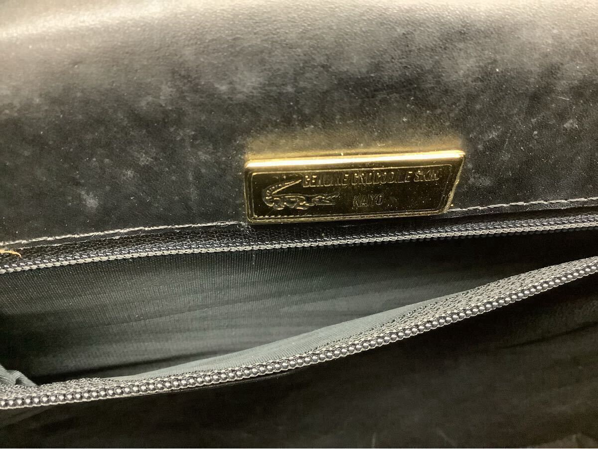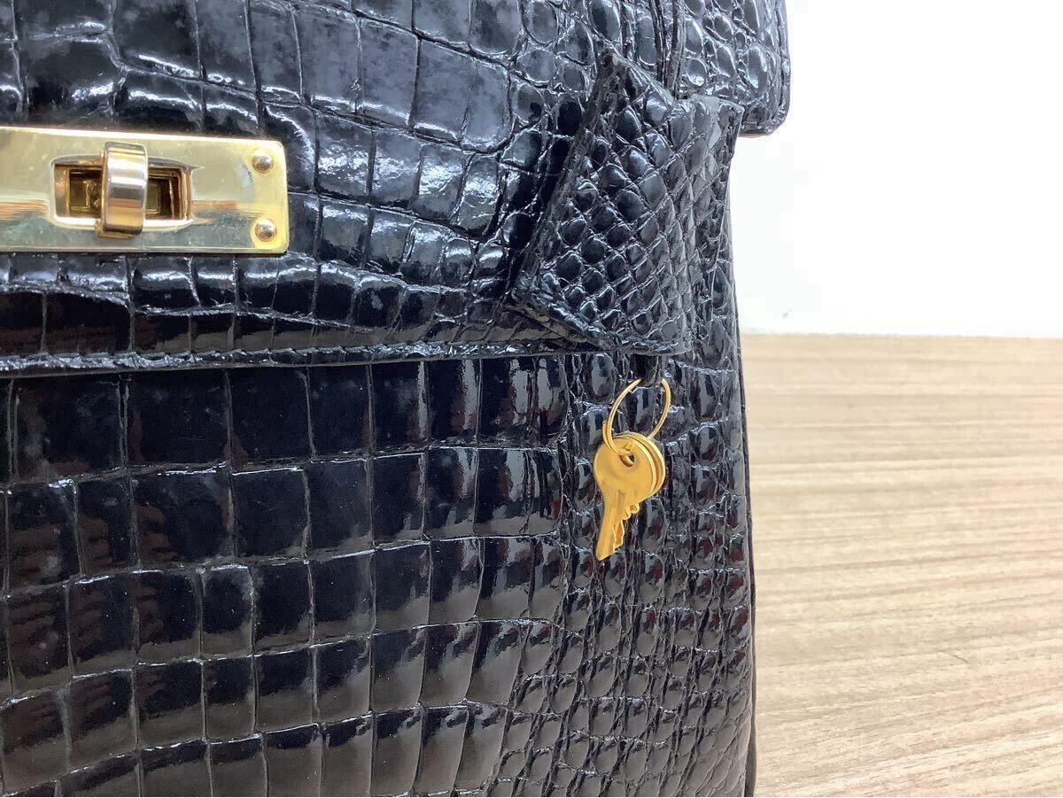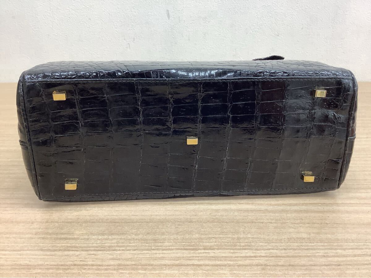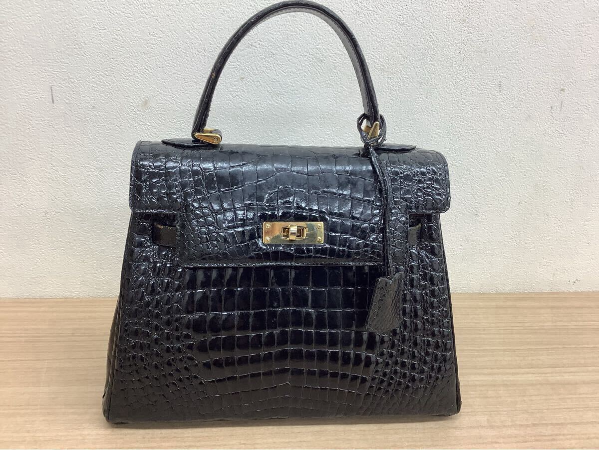 本革 クロコダイル レザー ハンドバッグ KAWO製 ケリータイプ 黒 ブラック ゴールド金具 高級 ワニ革
