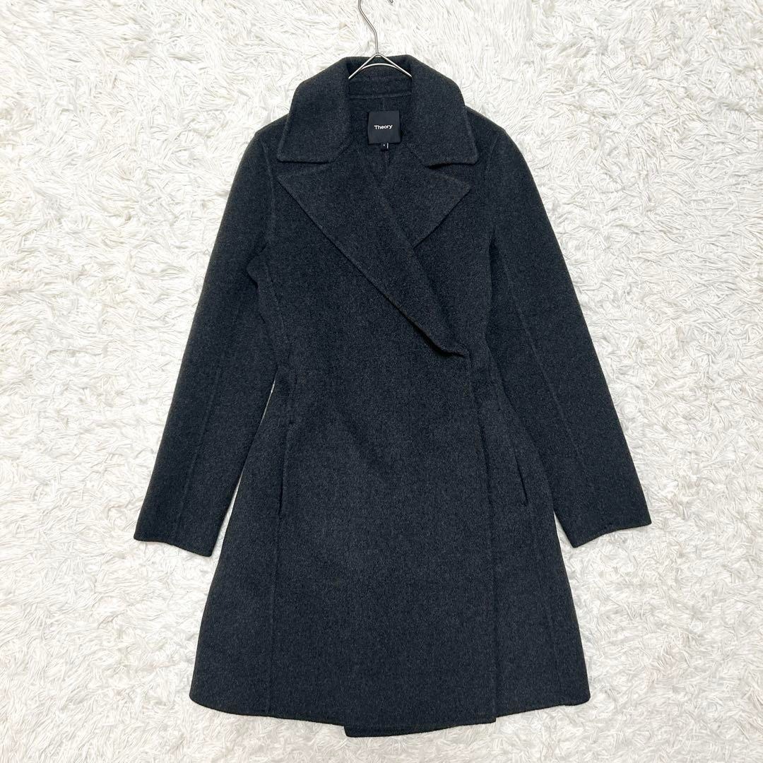 theory セオリー コート ロングコート カシミヤ100% グレー Sサイズ 高級 上質 エレガント フォーマル オフィス 通勤 ビジネス デイリー ベーシック レディース アウター 秋冬