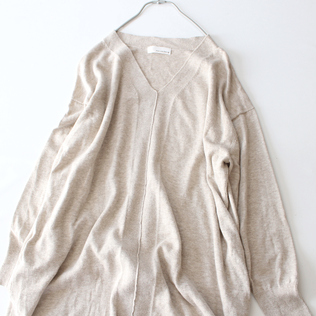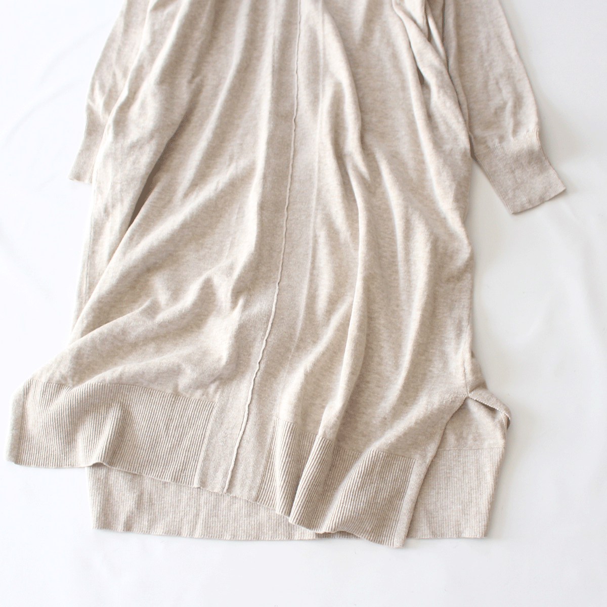 抜け感のあるVネック×センターの切り替えラインがさりげないポイント。一枚着ワンピースとしての着こなしはもちろん、パンツやロングスカートと合わせたレイヤードスタイルもおすすめです♪
