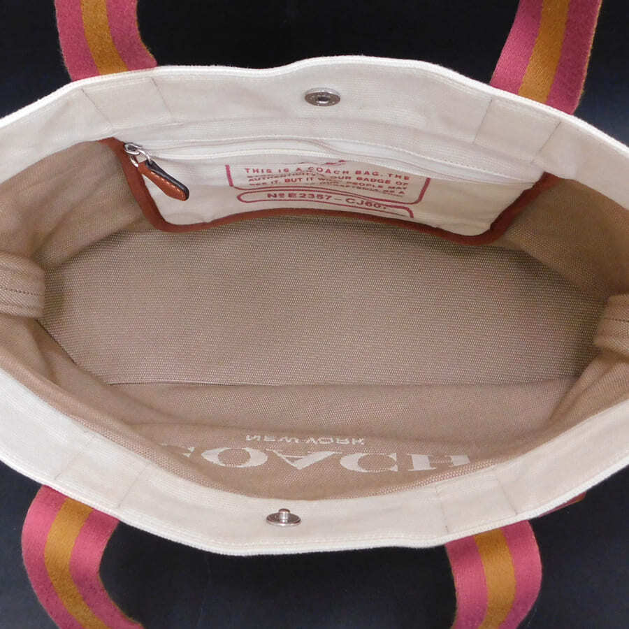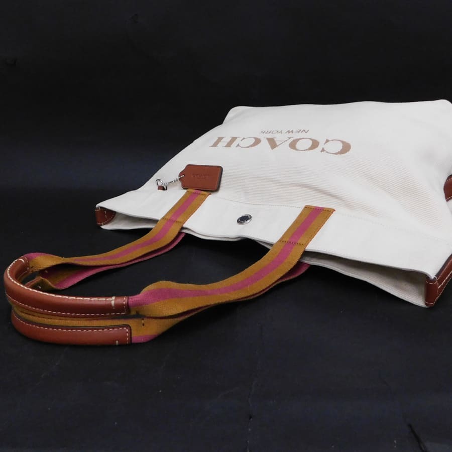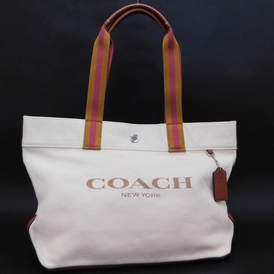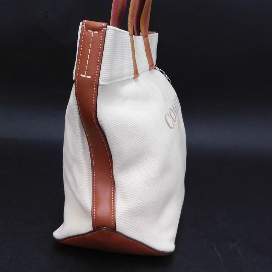 1円■ 美品/コーチ/トートバッグ/CJ607/ホワイト×ブラウン系/キャンバス×レザー/普段使い/COACH ■E.Bgs.An-18[中古]