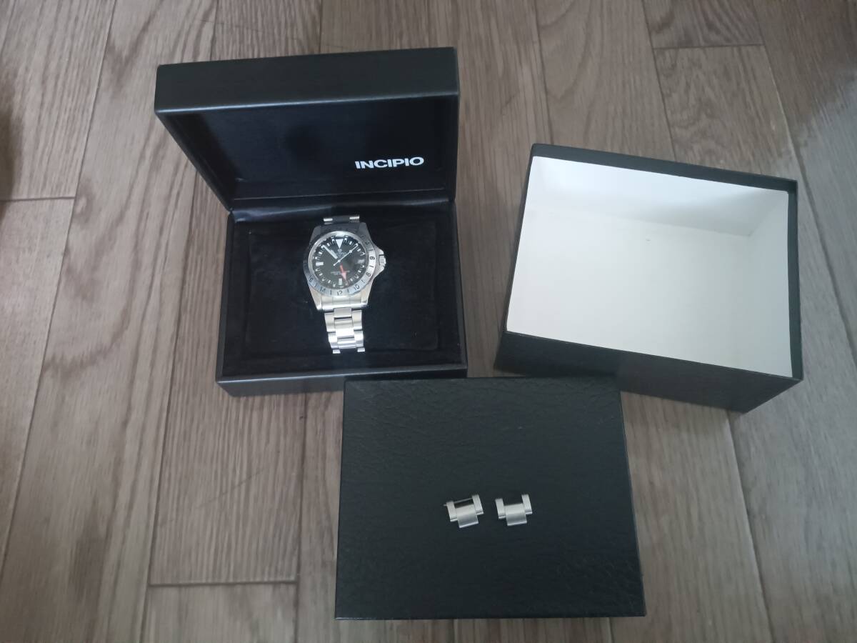 時計本体、余りコマ2個、外箱、中箱が出品内容です。余りコマの1個はピンがありませんので落札者ご自身で準備して下さい。