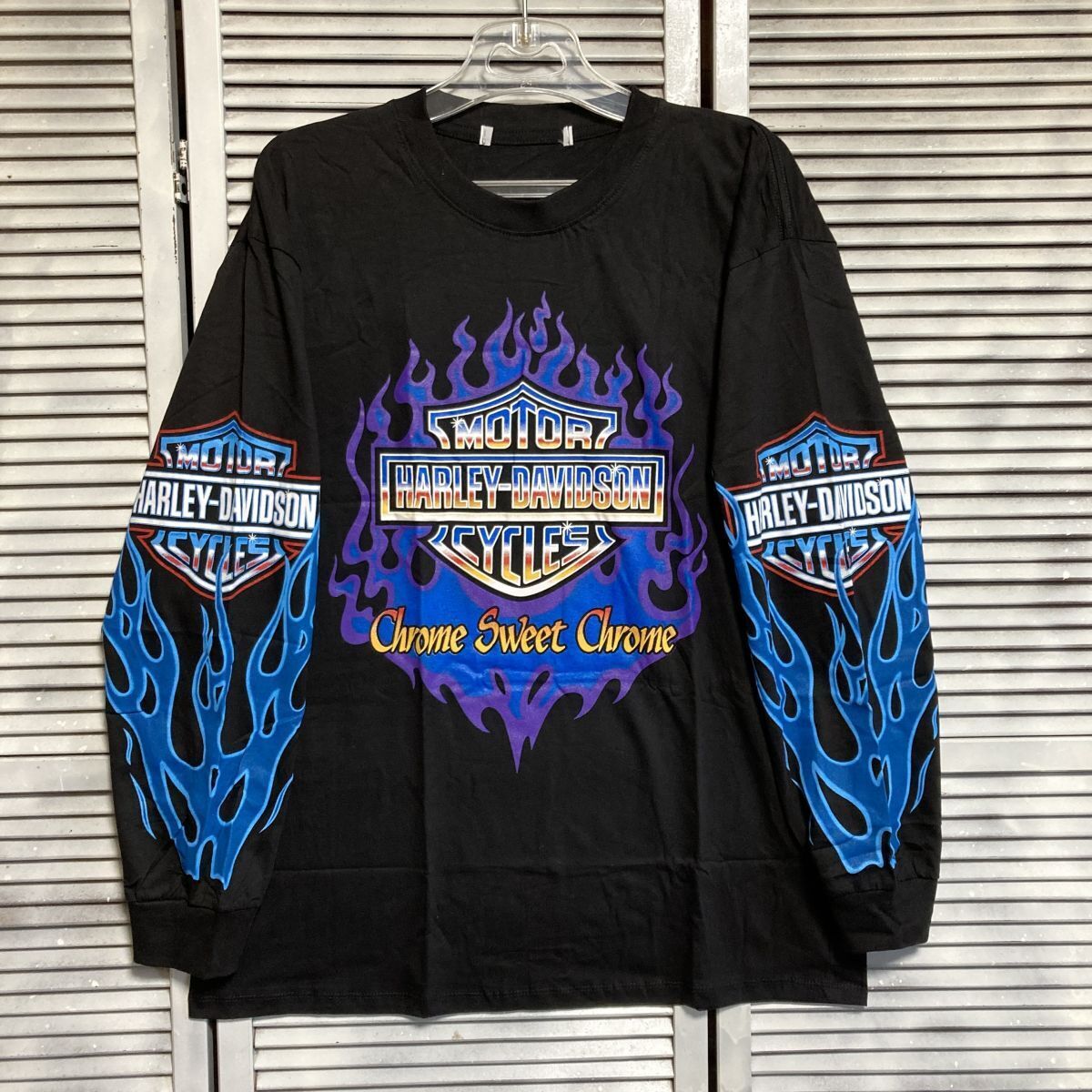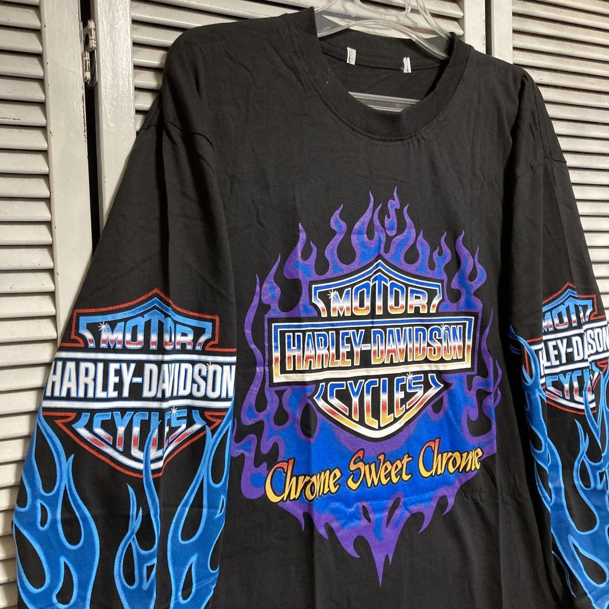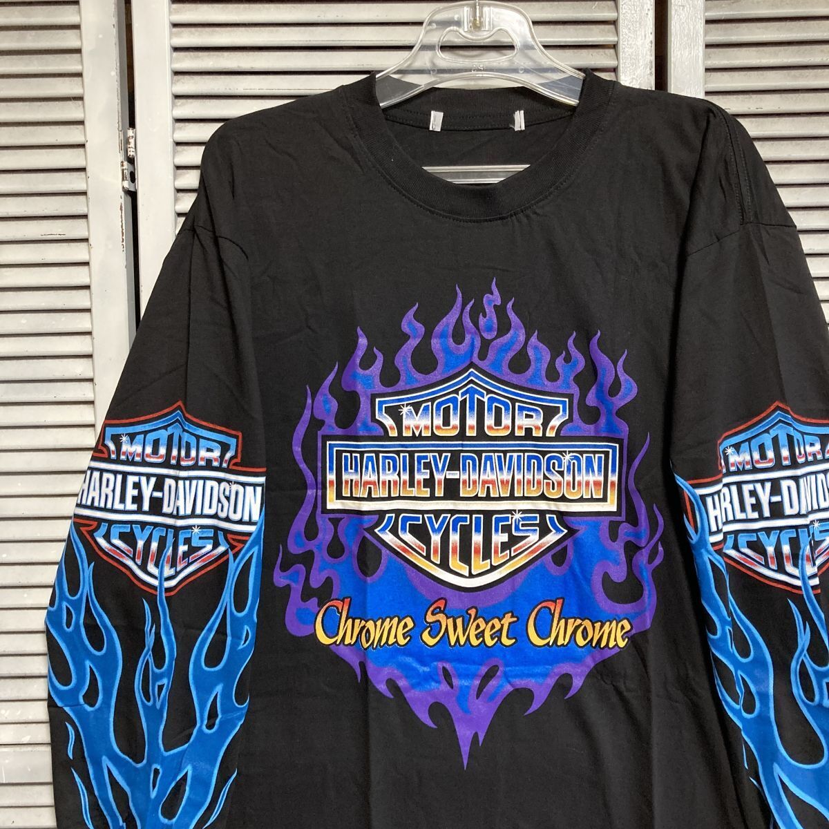1スタ 黒 ロゴ Tシャツ 長袖 ロンT ハーレーダビットソン ファイア バイク HARLEY DAVIDSON アメリカ 古着 卸 仕入