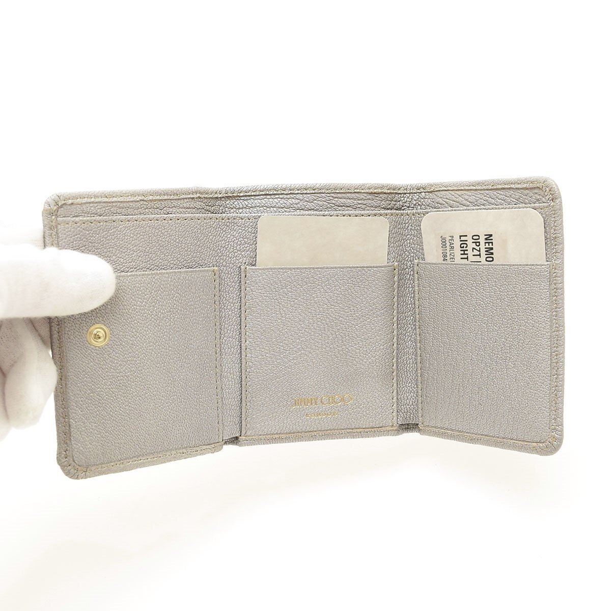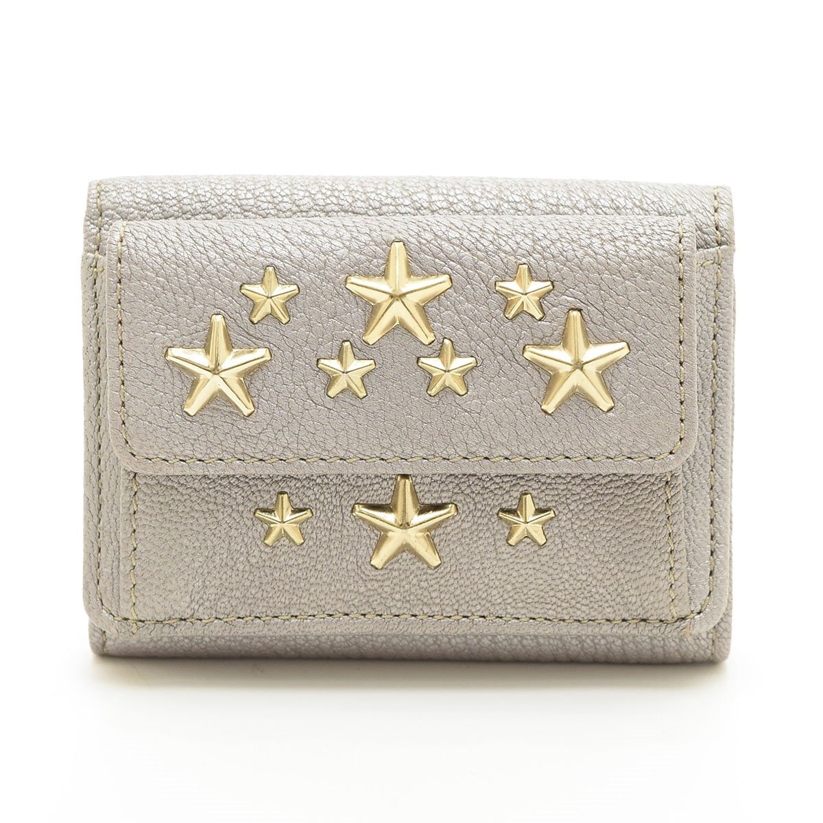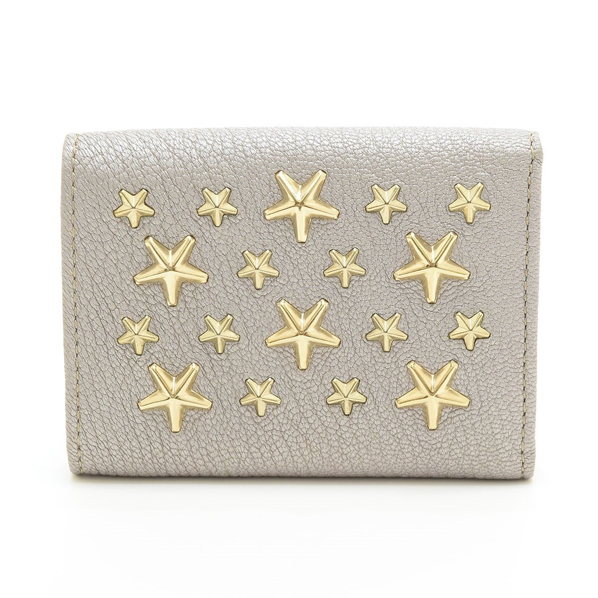 □565100 未使用品 JIMMY CHOO ジミーチュウ 三つ折り財布 ミニ財布 NEMO スタースタッズ ウォレット レザー レディース シルバー ゴールド