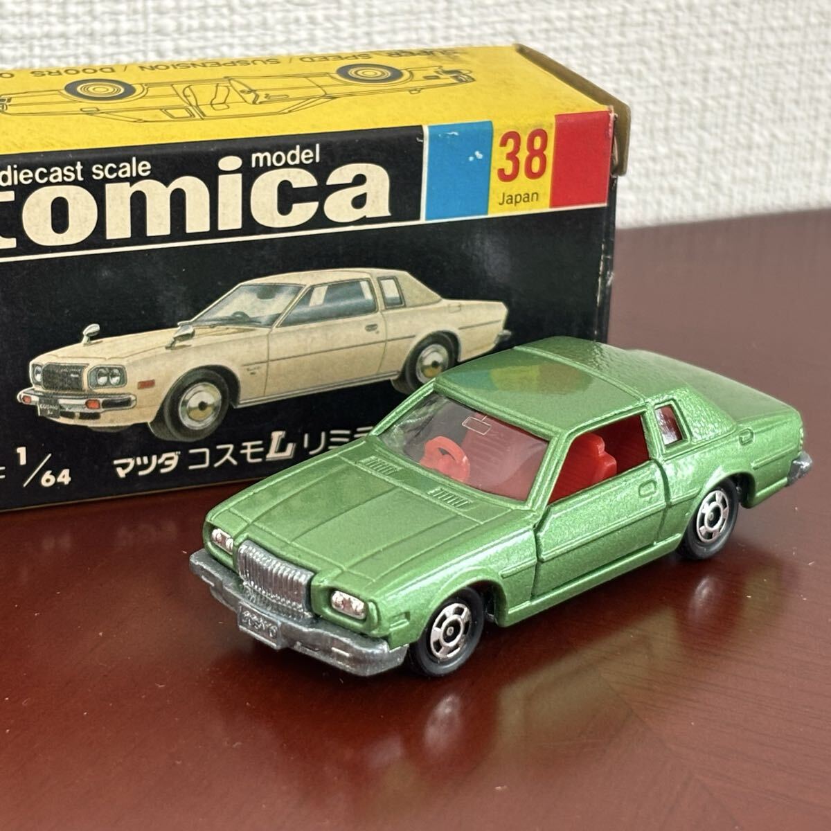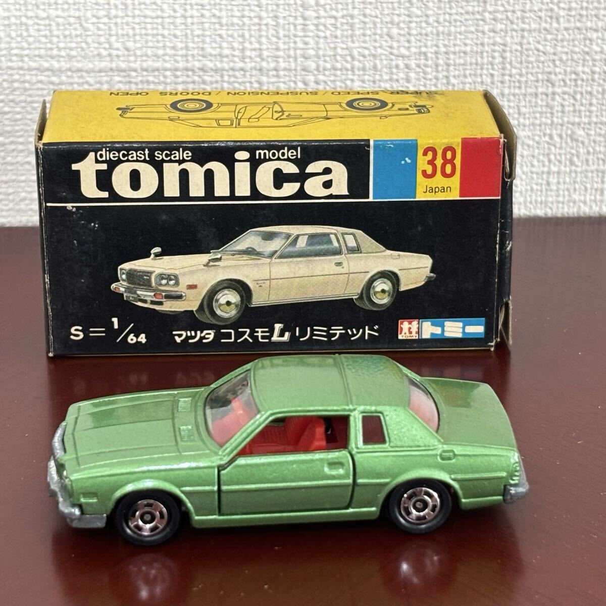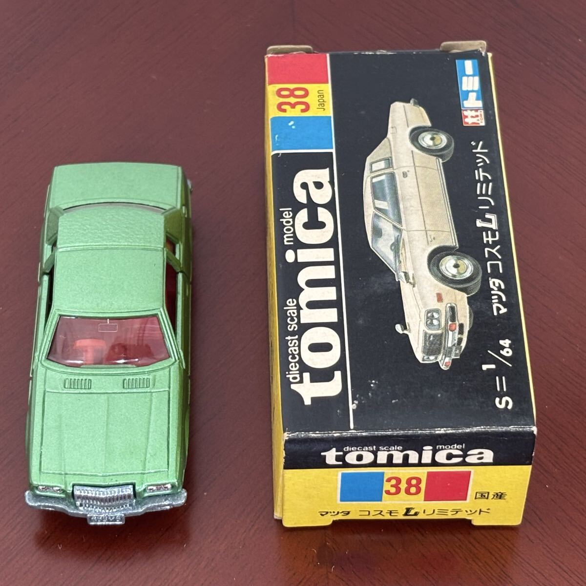 No38 コレクター放出品★ TOMICA 「マツダ コスモL リミテッド」旧車 ミニカー 箱あり 希少品 日本製 黒箱 1円スタート