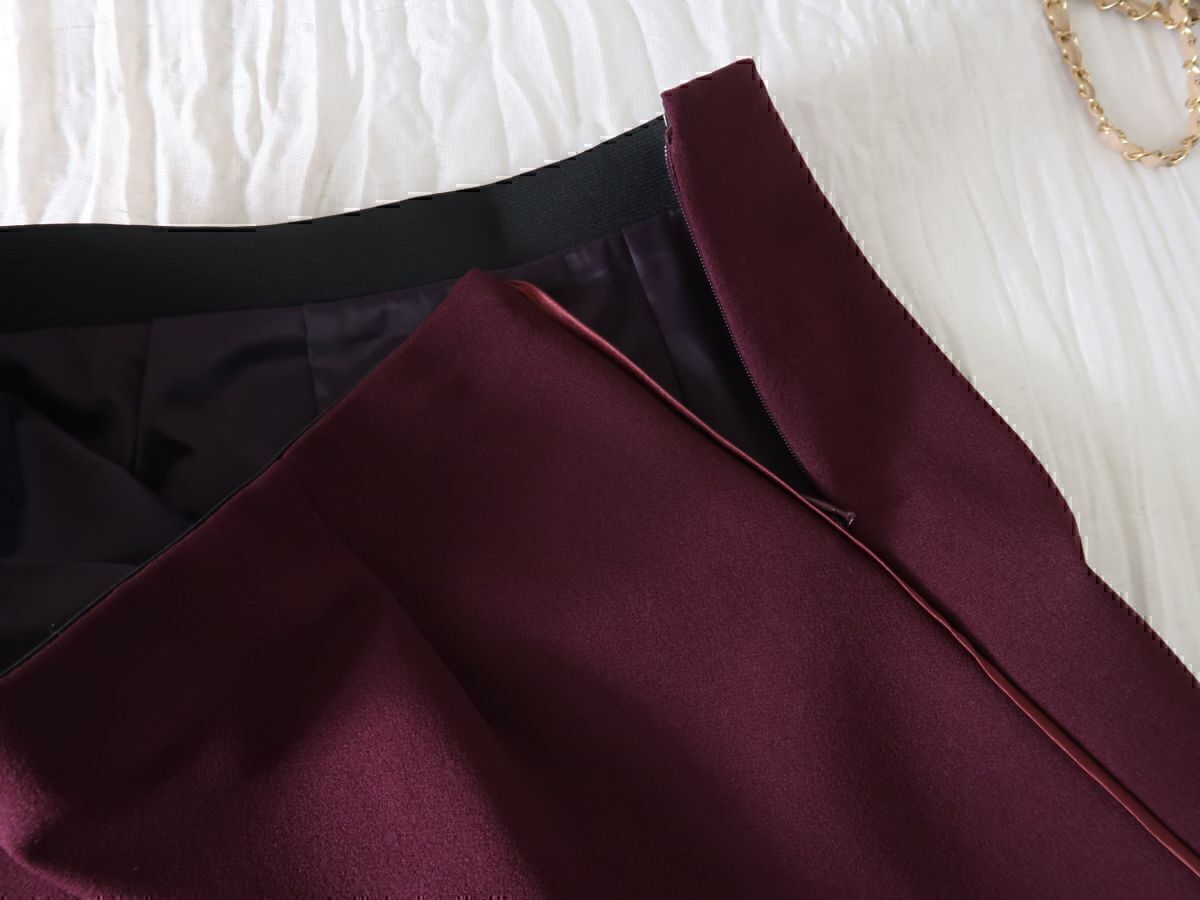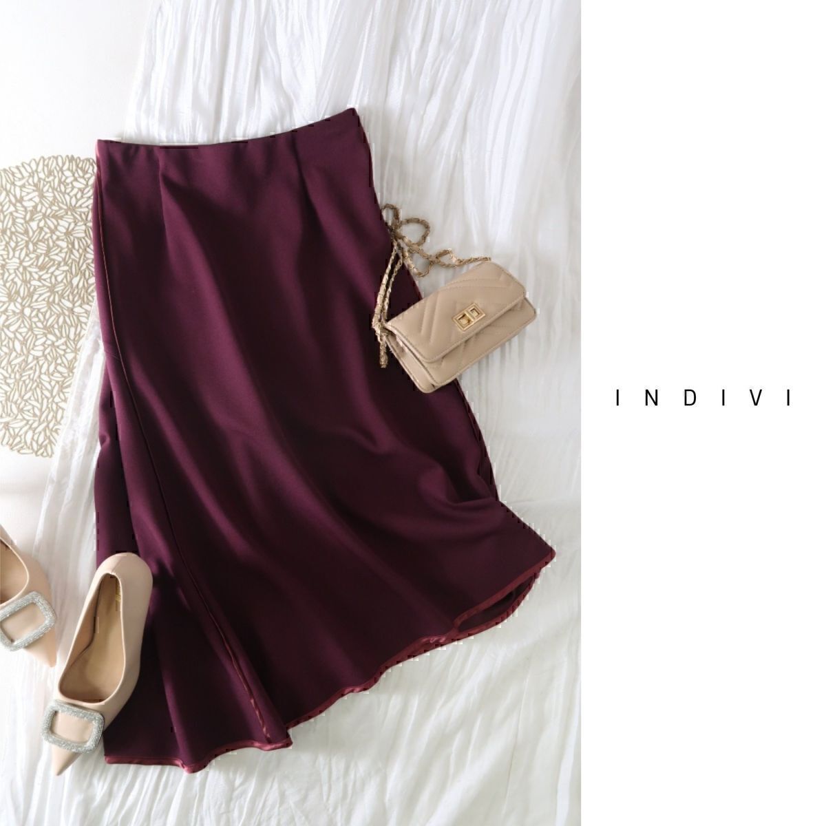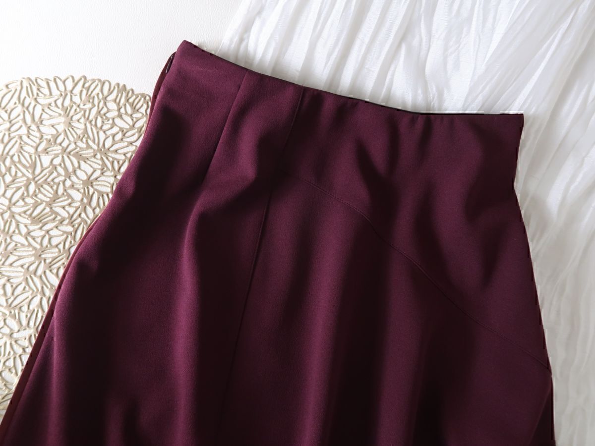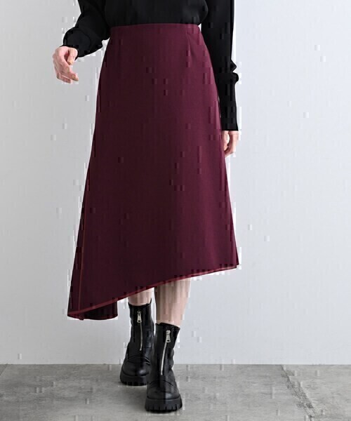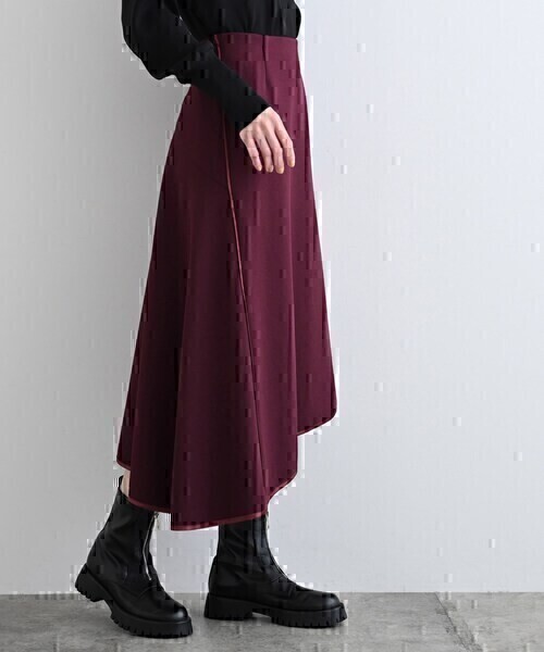バックスタイルに向かってアシンメトリーなフレアデザインを施したデザインスカートです。裾、脇には光沢素材のパイピングデザインでアクセントに。ストレッチ性のあるジョーゼット素材を使用し履き心地もイージーなのも魅力。ウエスト裏はゴムの仕様になっています。