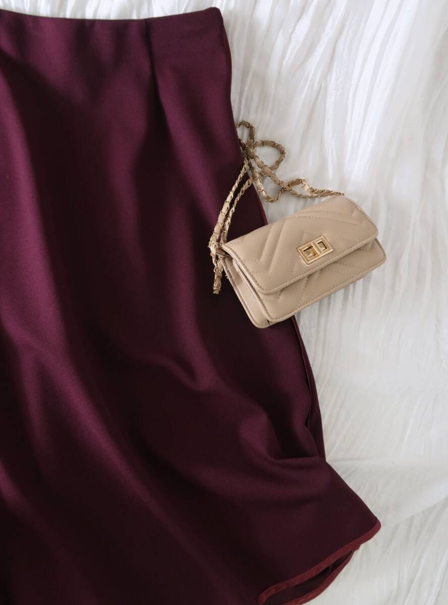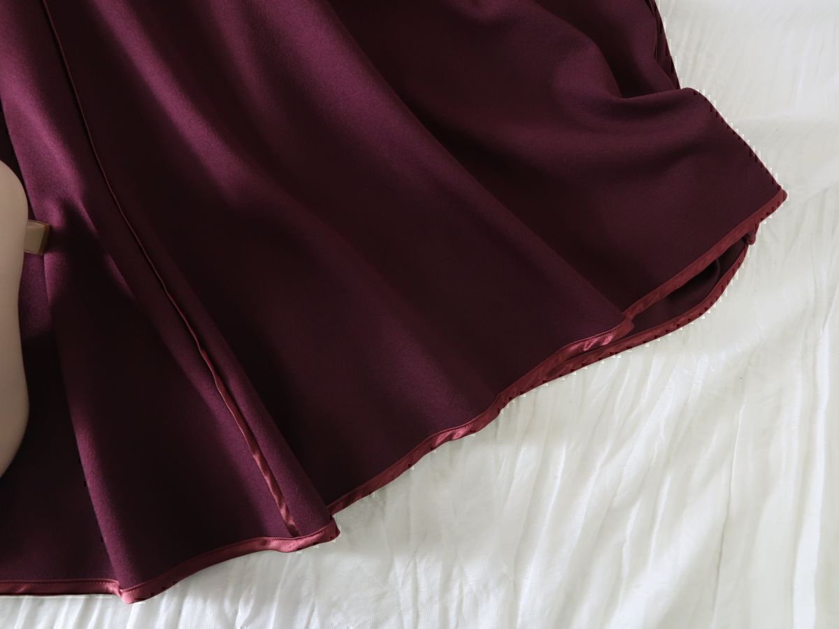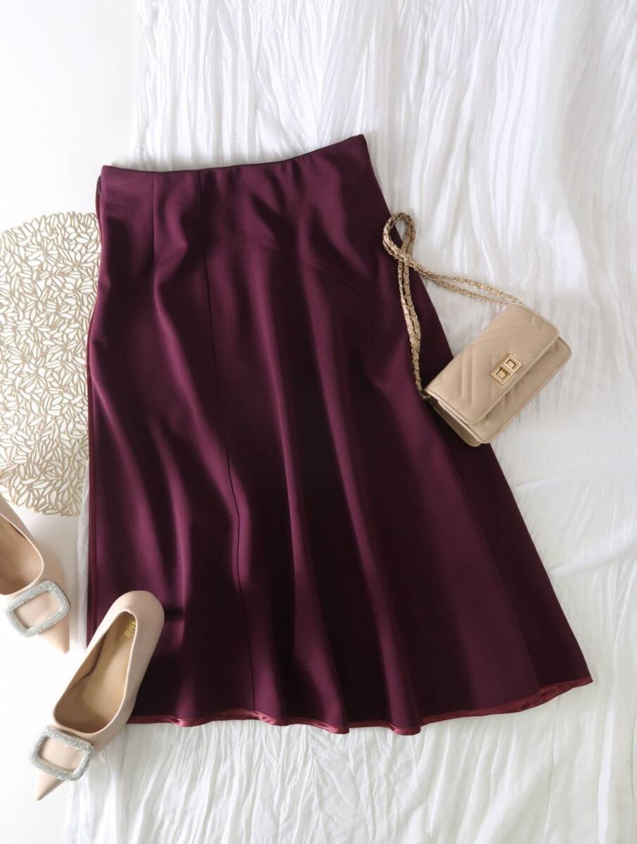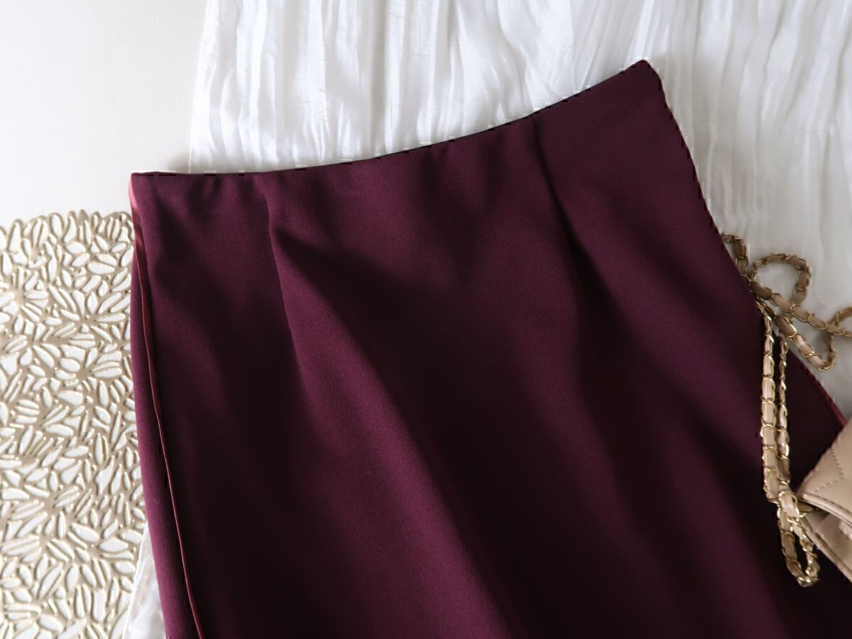 バックスタイルに向かってアシンメトリーなフレアデザインを施したデザインスカートです。裾、脇には光沢素材のパイピングデザインでアクセントに。ストレッチ性のあるジョーゼット素材を使用し履き心地もイージーなのも魅力。ウエスト裏はゴムの仕様になっています。