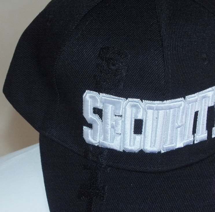 【新】活動者実用中の「セキュリティー」銀糸を使ったベースボールキャップ ブラックドビー刺繍 | 民間防災