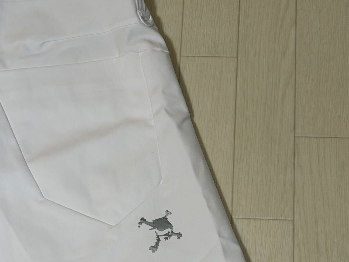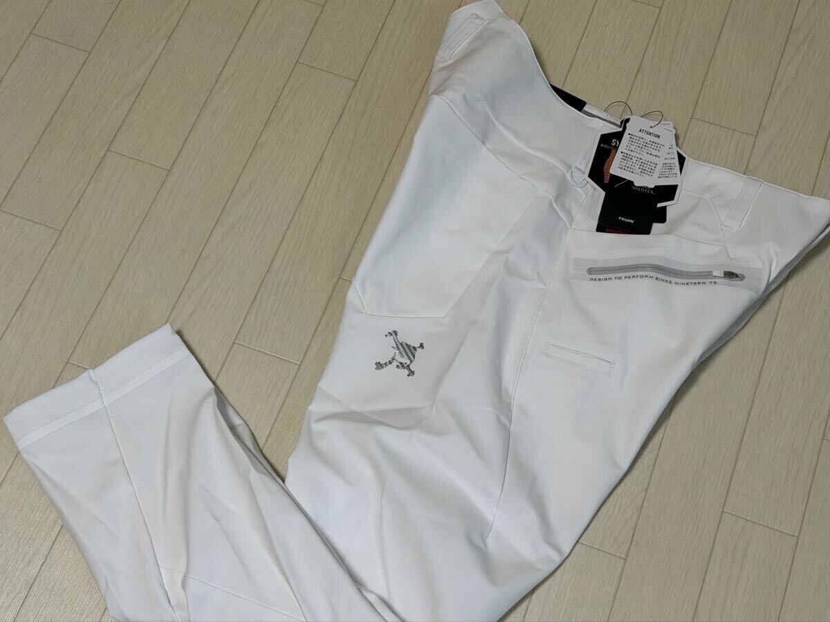 ルックスオティカジャパン株式会社の商品です。ご安心下さいませ。 サイズ:36(ウエスト92cm) 【サイズ表】 【JPN 33)】総丈(ベルト込み)94、前開き有り、ヒップ(周囲)105、股下71、股上23、わたり幅33.5、裾幅15.5ドル無し 【JPN 36)】総丈(ベルト込み)97、前開き有り、ヒップ(周囲)113、股下73、股上24、わたり幅35、裾幅17 素 材:ポリエステル100% カラー:ホワイト 特 長:撥水 防風 4way Stretch Dry Pocketing Waist Grip UPF50+ 定 価:19,800円(税込) 格安出品です。必ず自己紹介欄をご覧になり入札を頂きます様、よろしくお願い致します。 | ||||