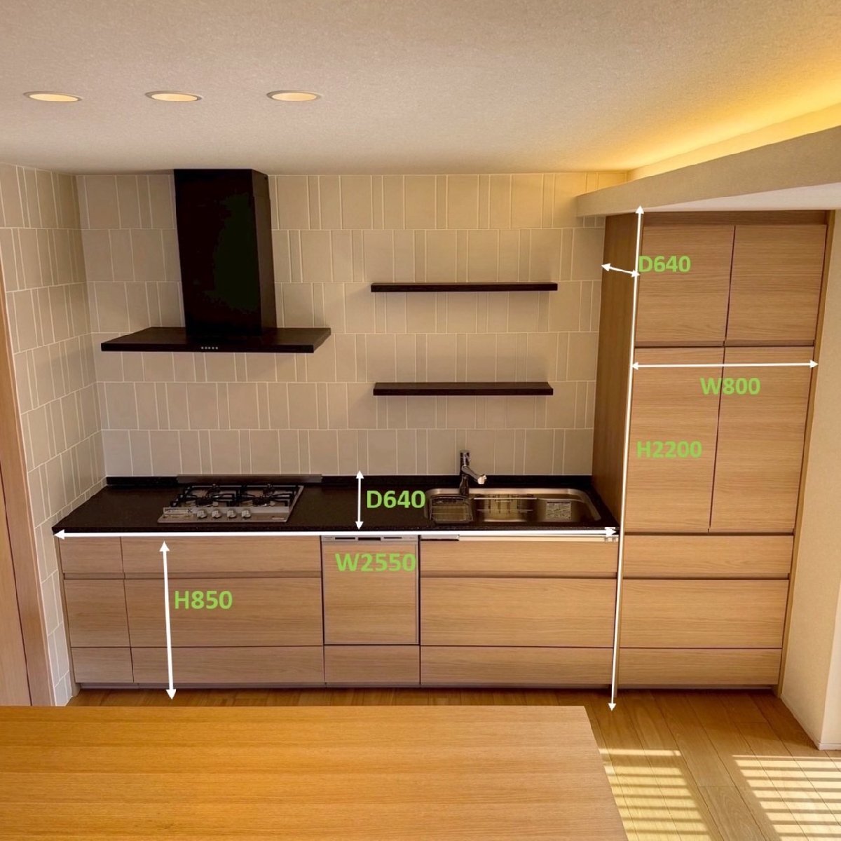 ■キッチン W2550×D640×H850mm ■食器棚 (キッチン右) W800×D640×H2200mm |