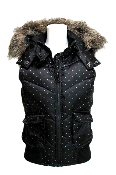 HILFIGER DENIMトミーヒルフィガー ◆かわいいドット柄 ダウンベスト XSサイズ ファー付き ◆P22