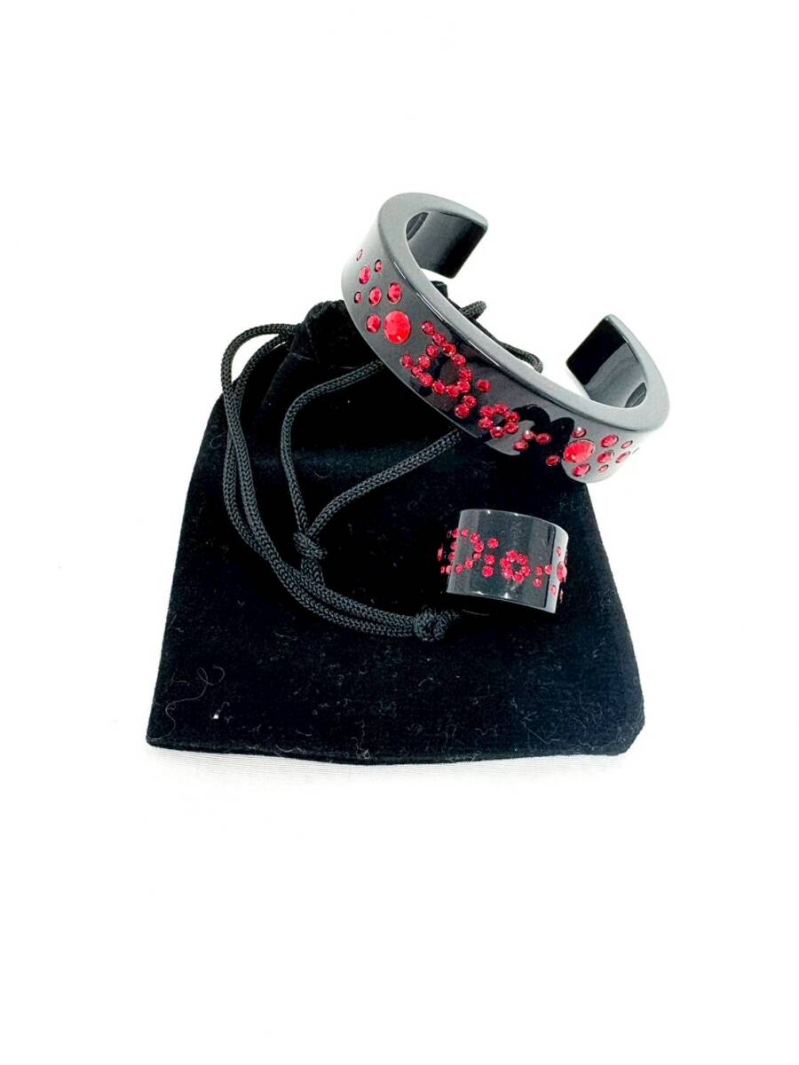 H2217*6 Christian Dior クリスチャンディオール バングル/リング 2点セット ラインストーン ブレスレット 指輪 保存袋付き |