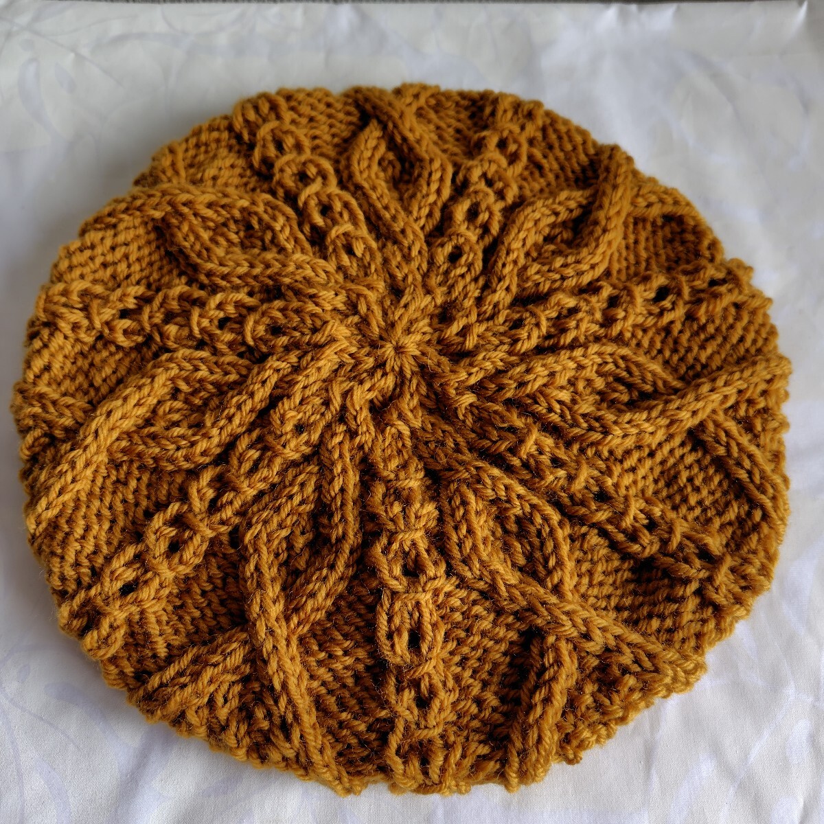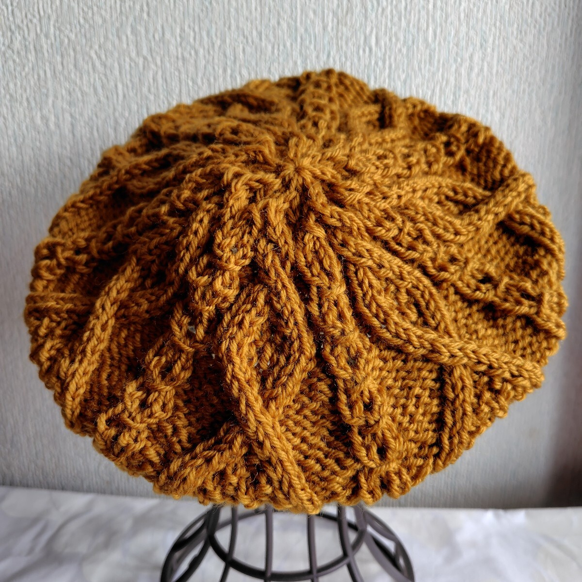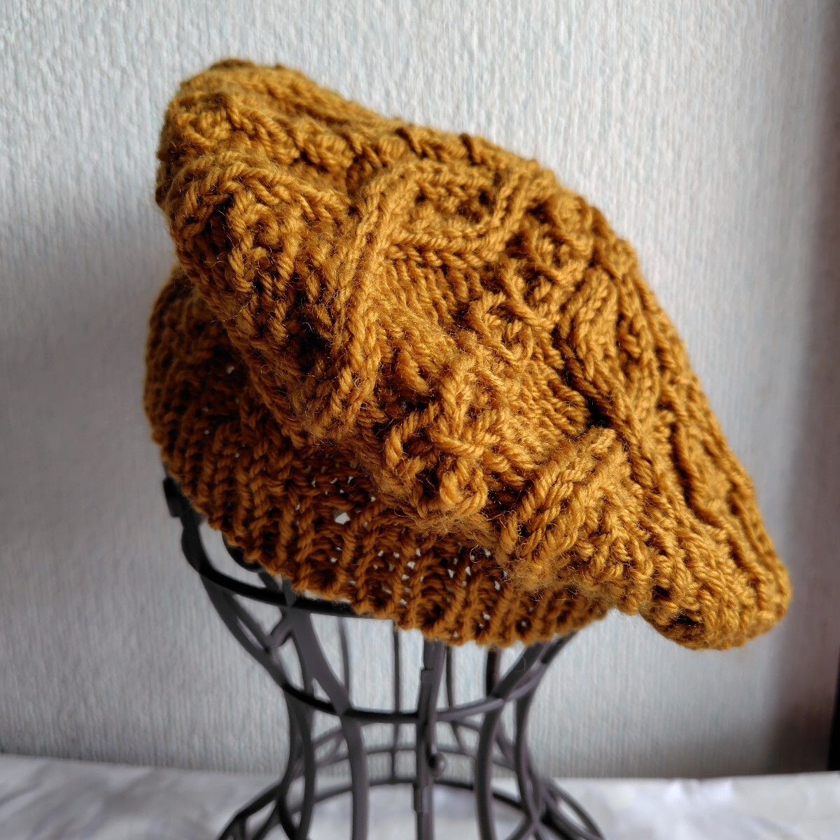 商品名 : アラン模様手編みニットベレー帽 レディース
