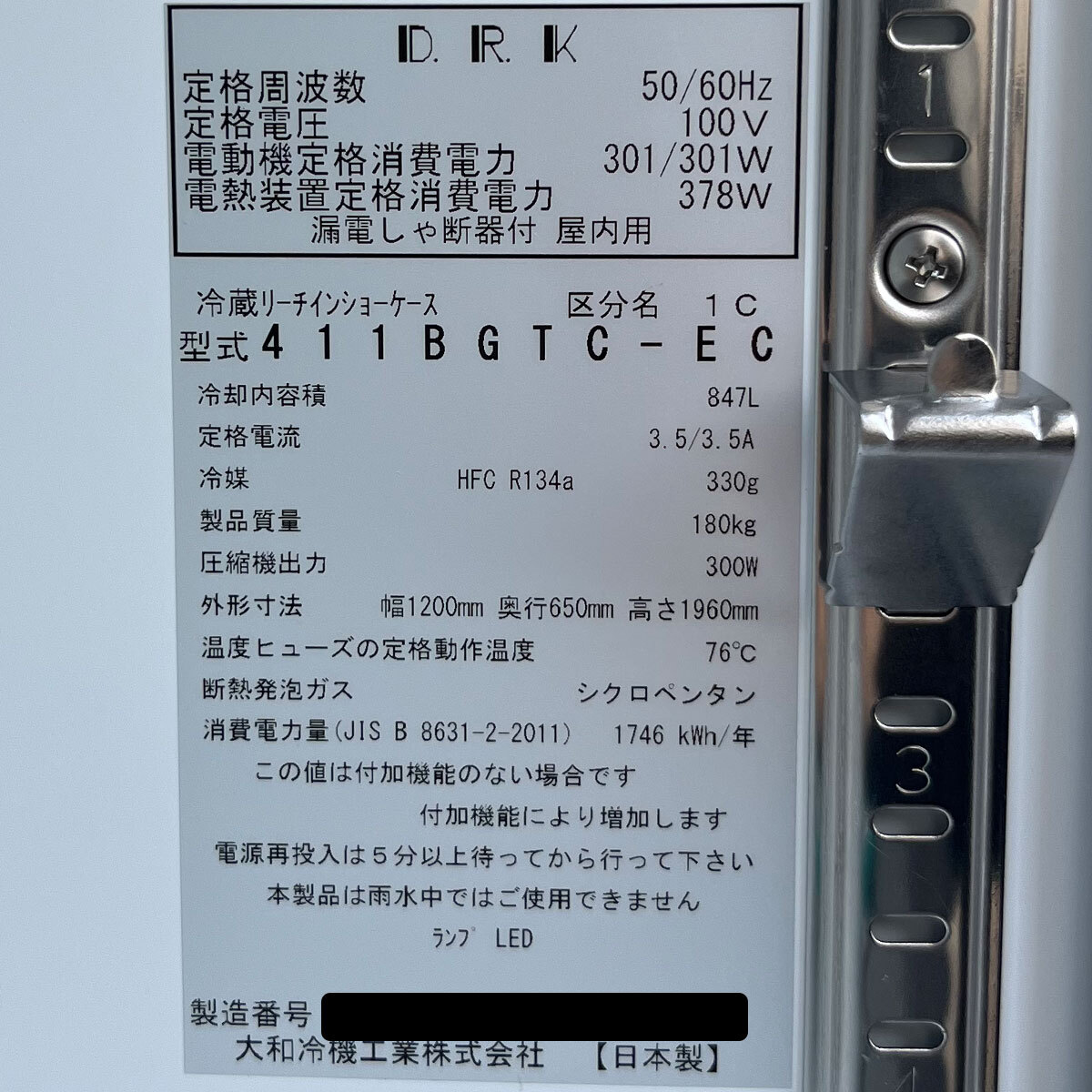 | 大和冷機工業株式会社 冷蔵リーチインショーケース 411BGTC-EC |