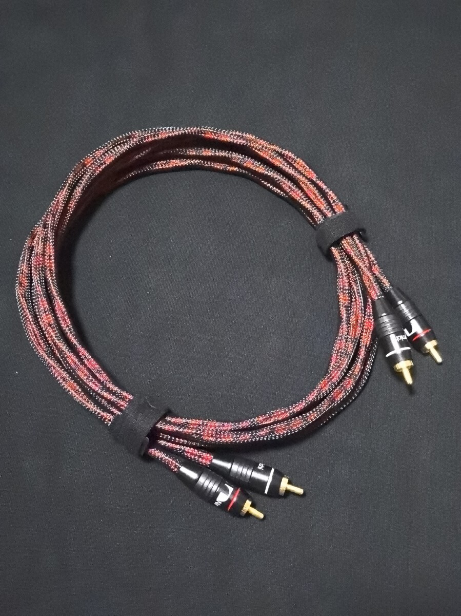 非常に珍しいウェスタン・エレクトリック社製の18GAワイヤー(撚り線)4本を採用して、ケーブルにシールドチューブを被せて保護ありますので、外部からのノイズの影響を受けにくい作りとなっております。線自体が柔らかく、使いやすい柔軟性を持っています。