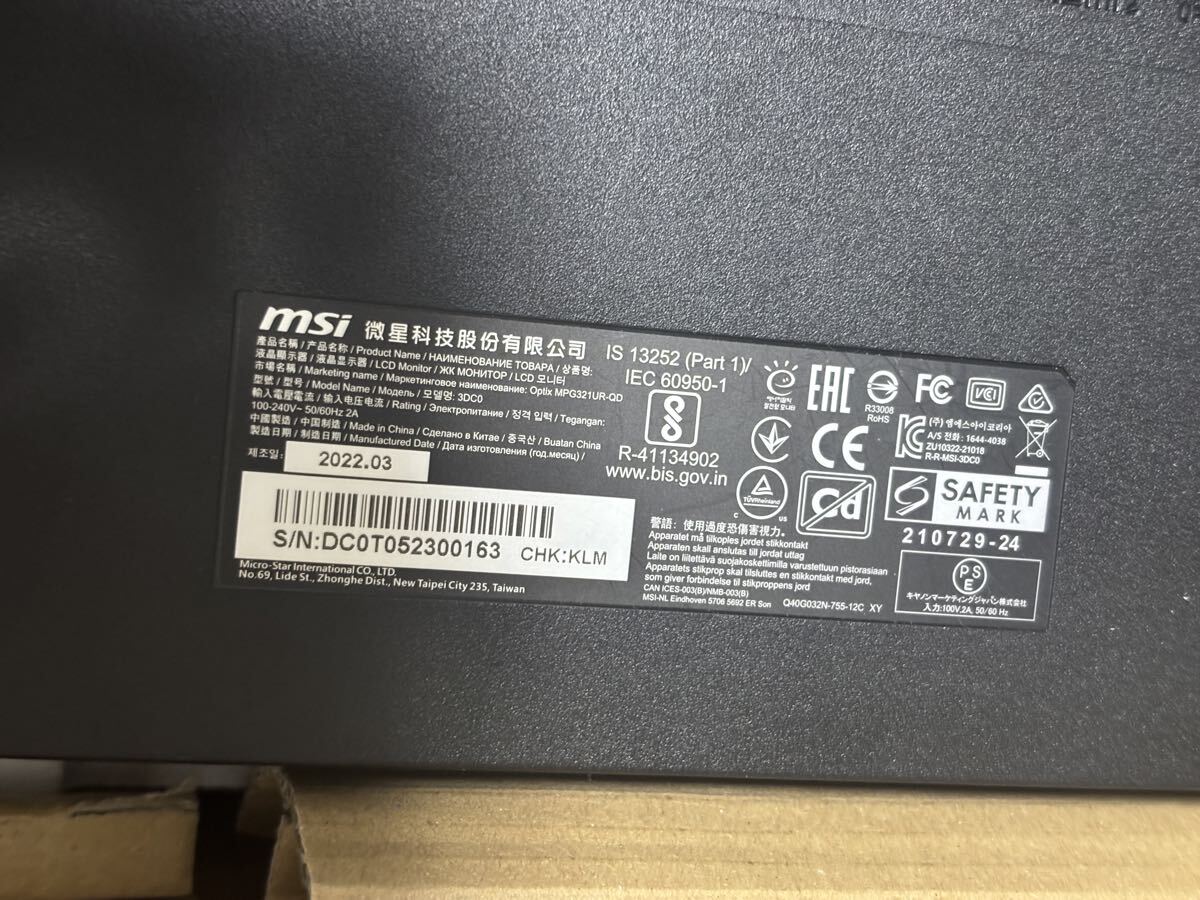 通電確認済 MSI MPG POTIX MPG321UR-QD 4K 量子ドット 144Hz ゲーミングモニター ブラック 中古