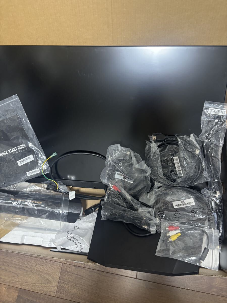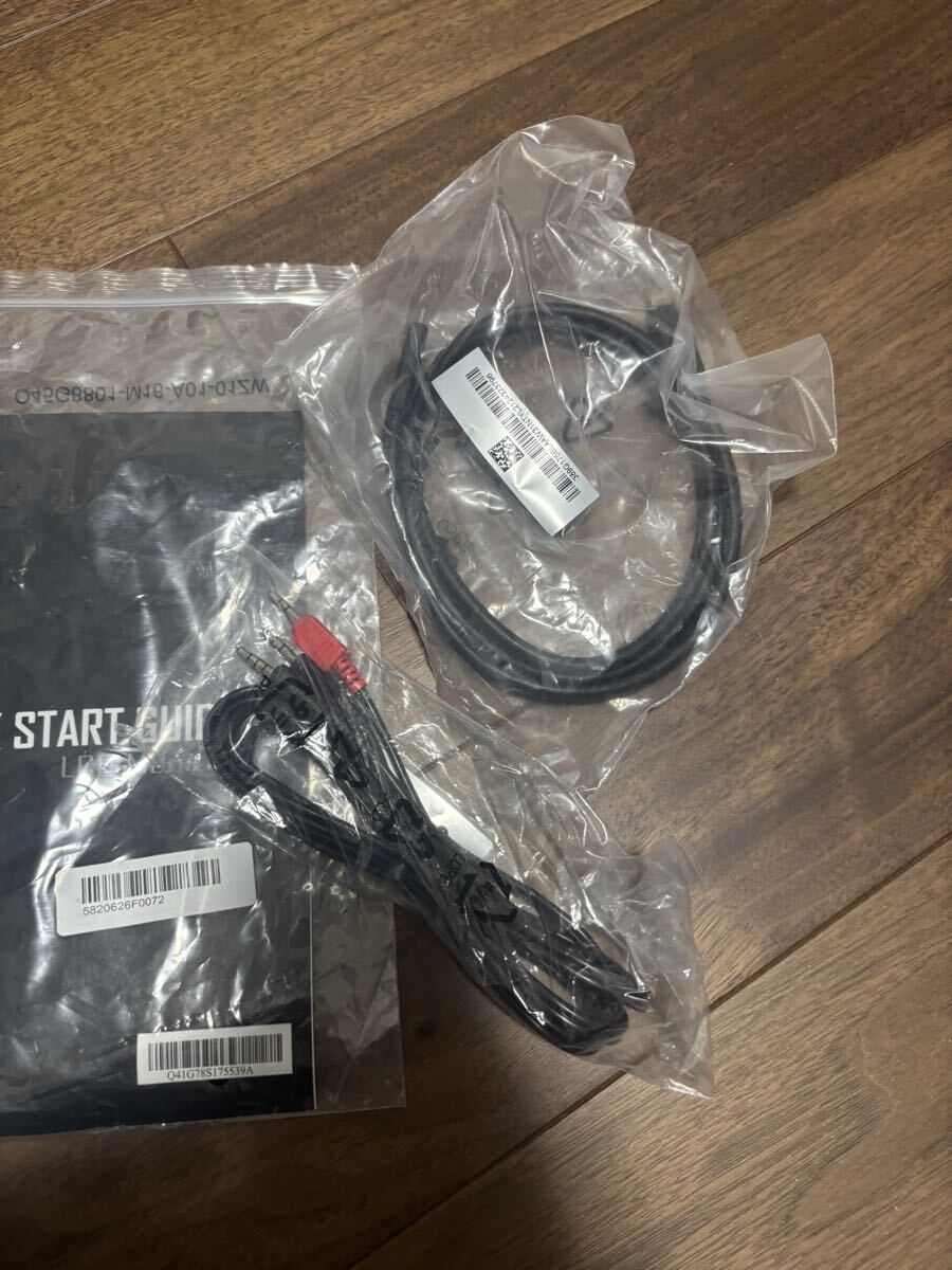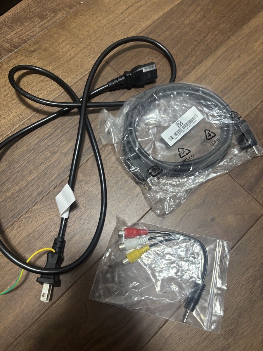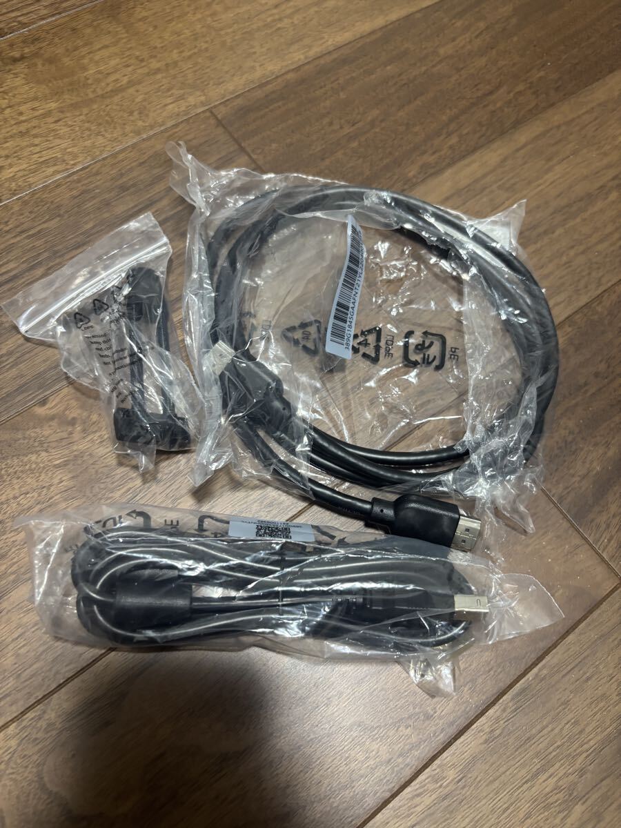 HDMIケーブル、ディスプレイケーブル、電源ケーブル、USB-Cケーブルが付属しています。