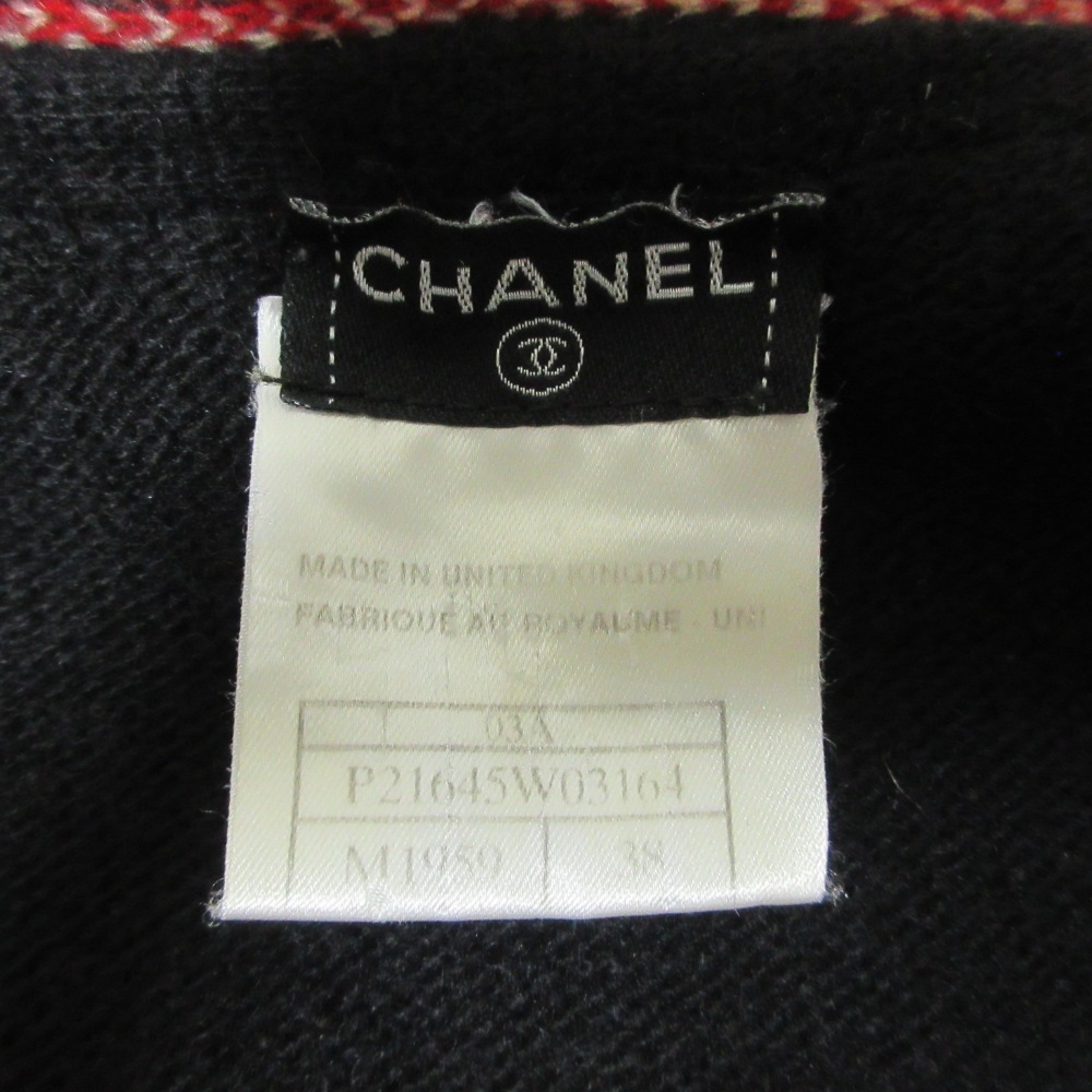 良品 03A CHANEL シャネル カシミヤ100% トリムニット カーディガン P21645 サイズ38 ブラック レッド