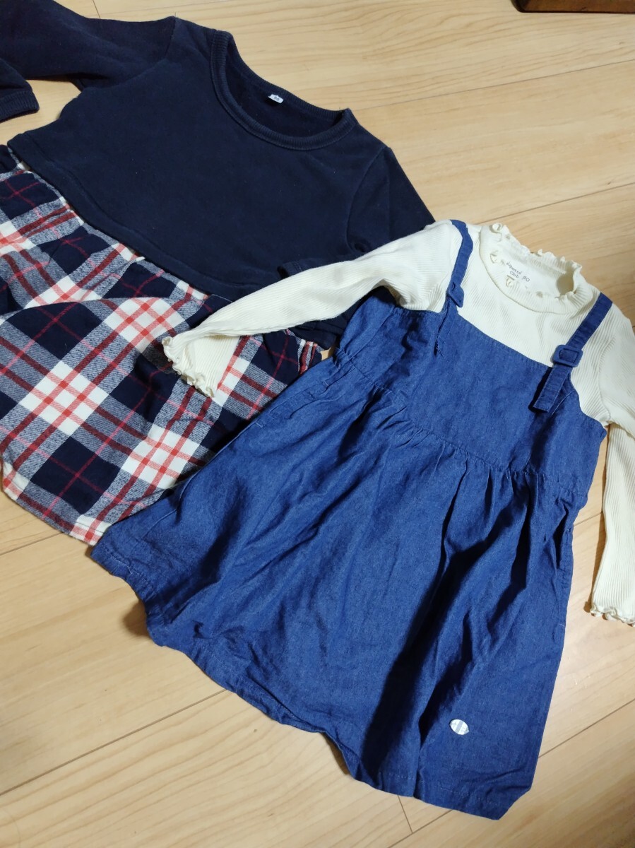 2枚とも数回着用させました。目立った傷みはありませんが、中古となるため気になる方は入札をお控えください。記名はありません。