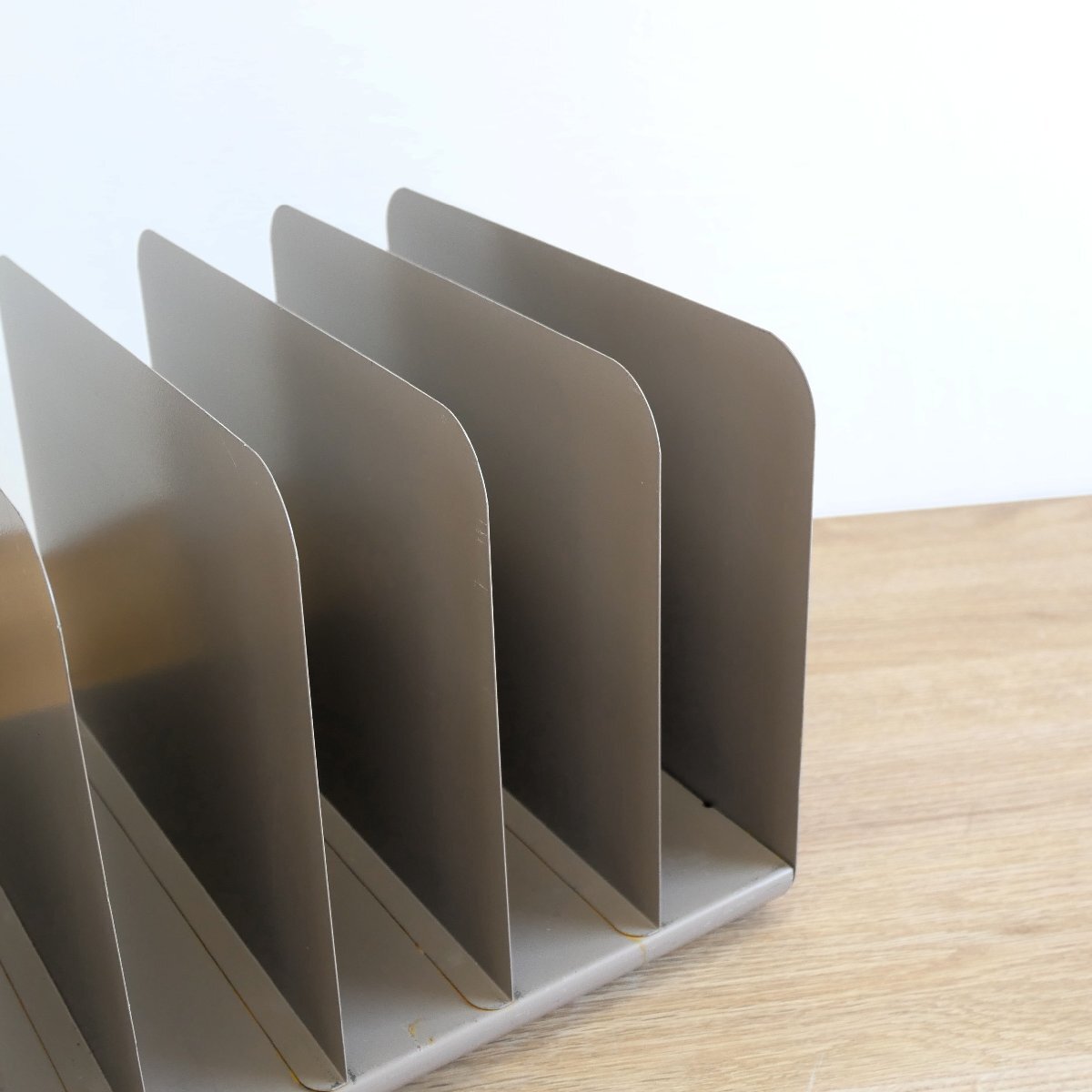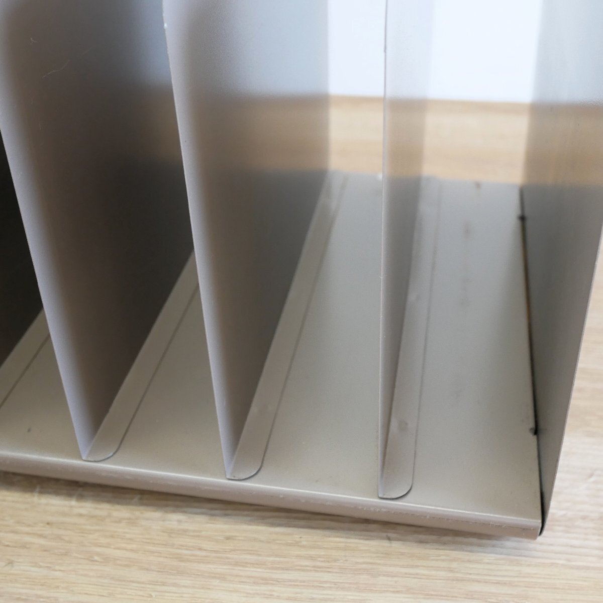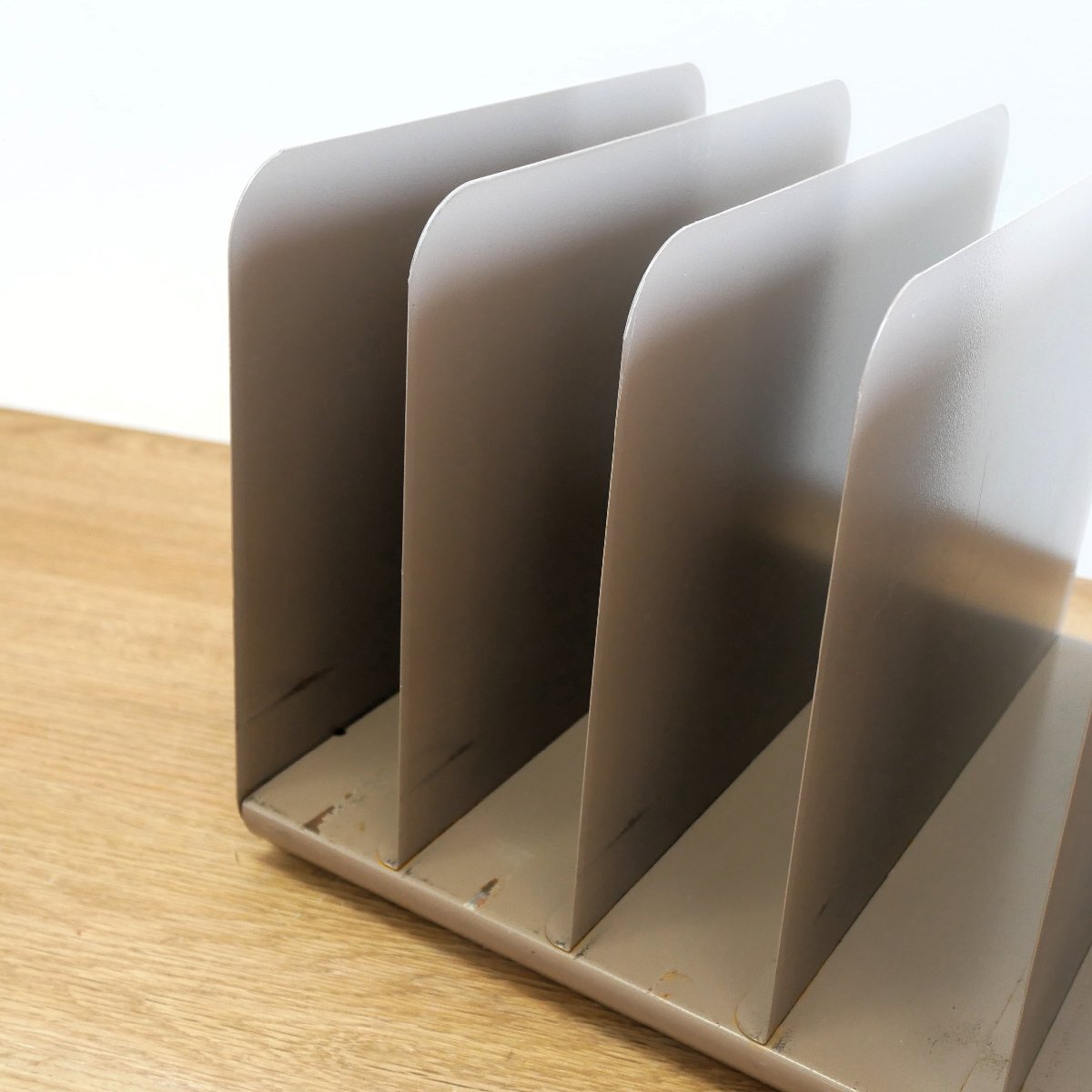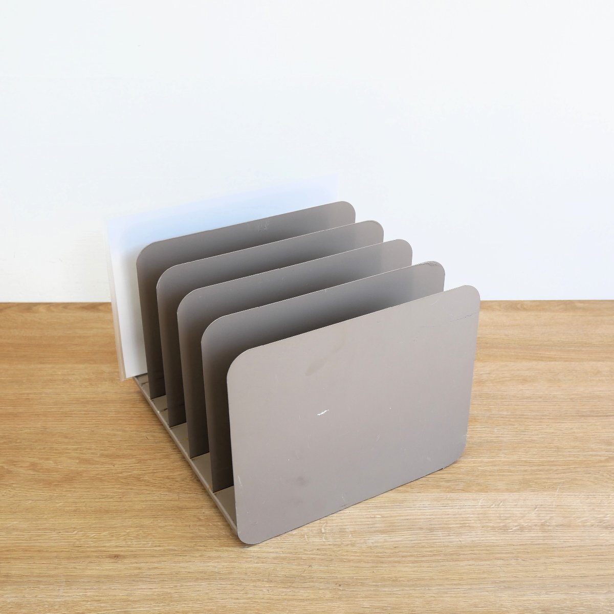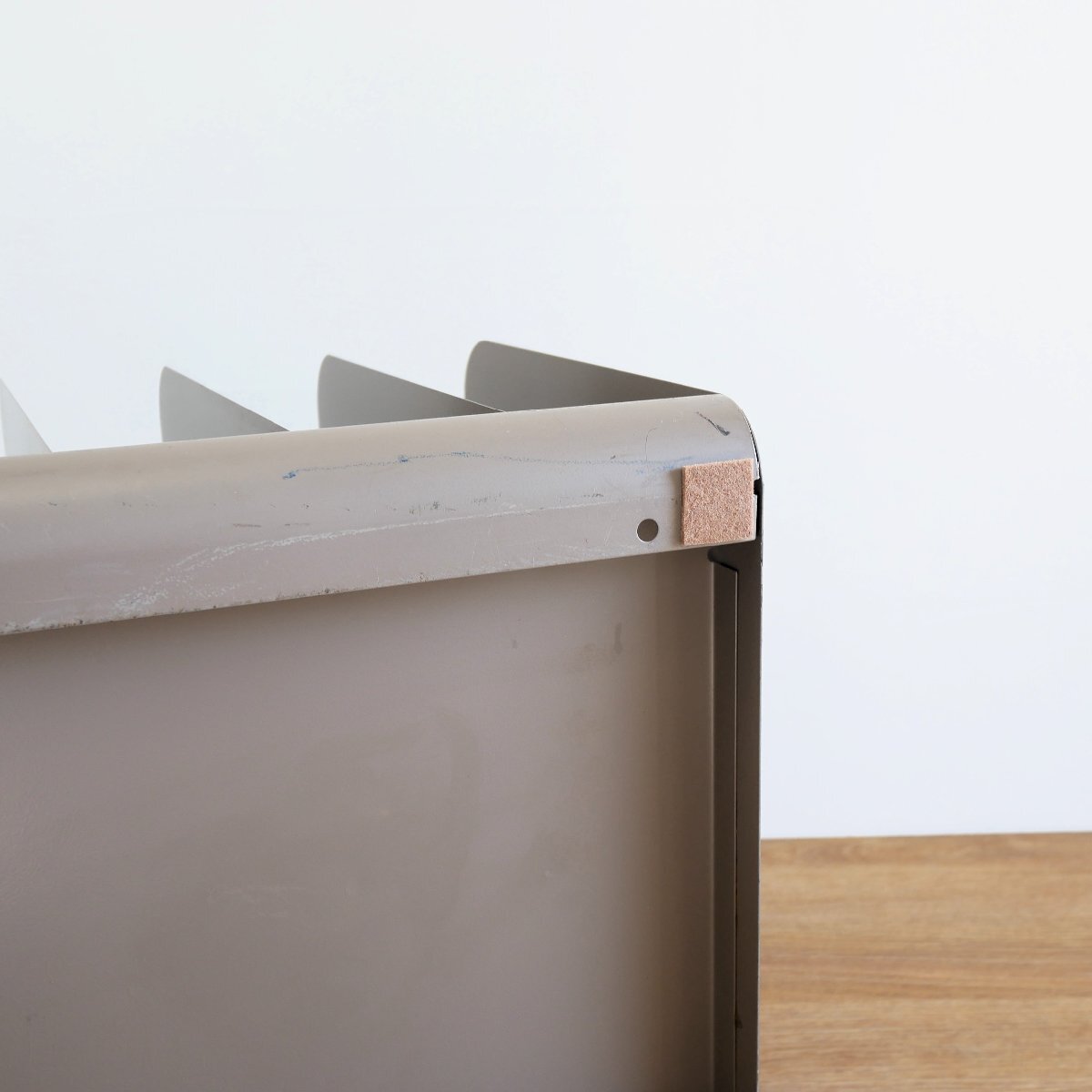 商品説明 explanation | 1970年代頃のスチール製ファイルラックです。 ※5仕切り ベージュ A4サイズの書類を収納すると画像2枚目のようになります。 ヴィンテージアイテムをデスク周りにいかがでしょうか。 |