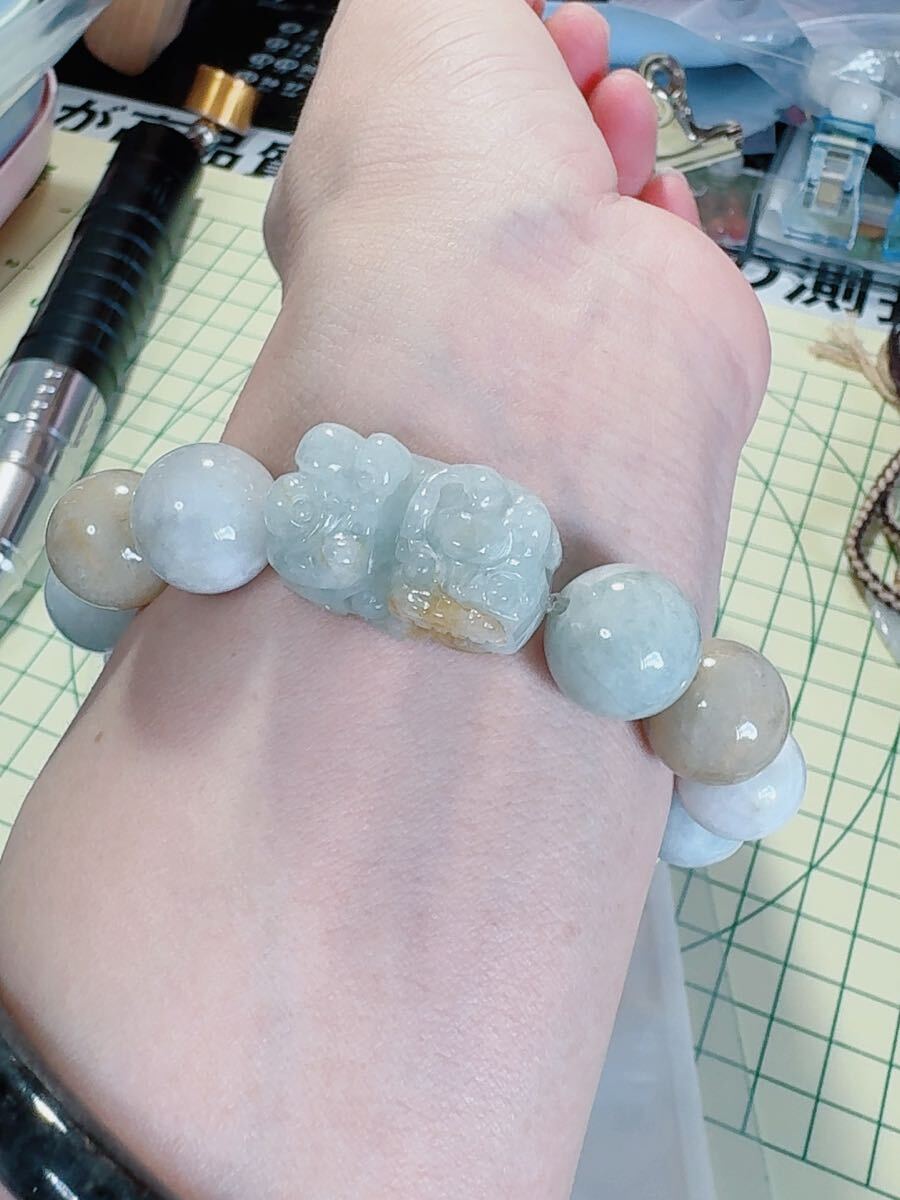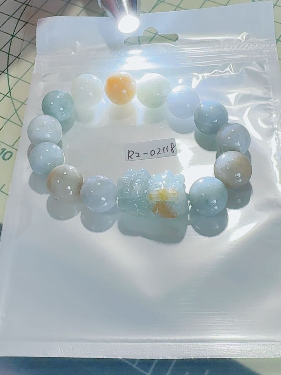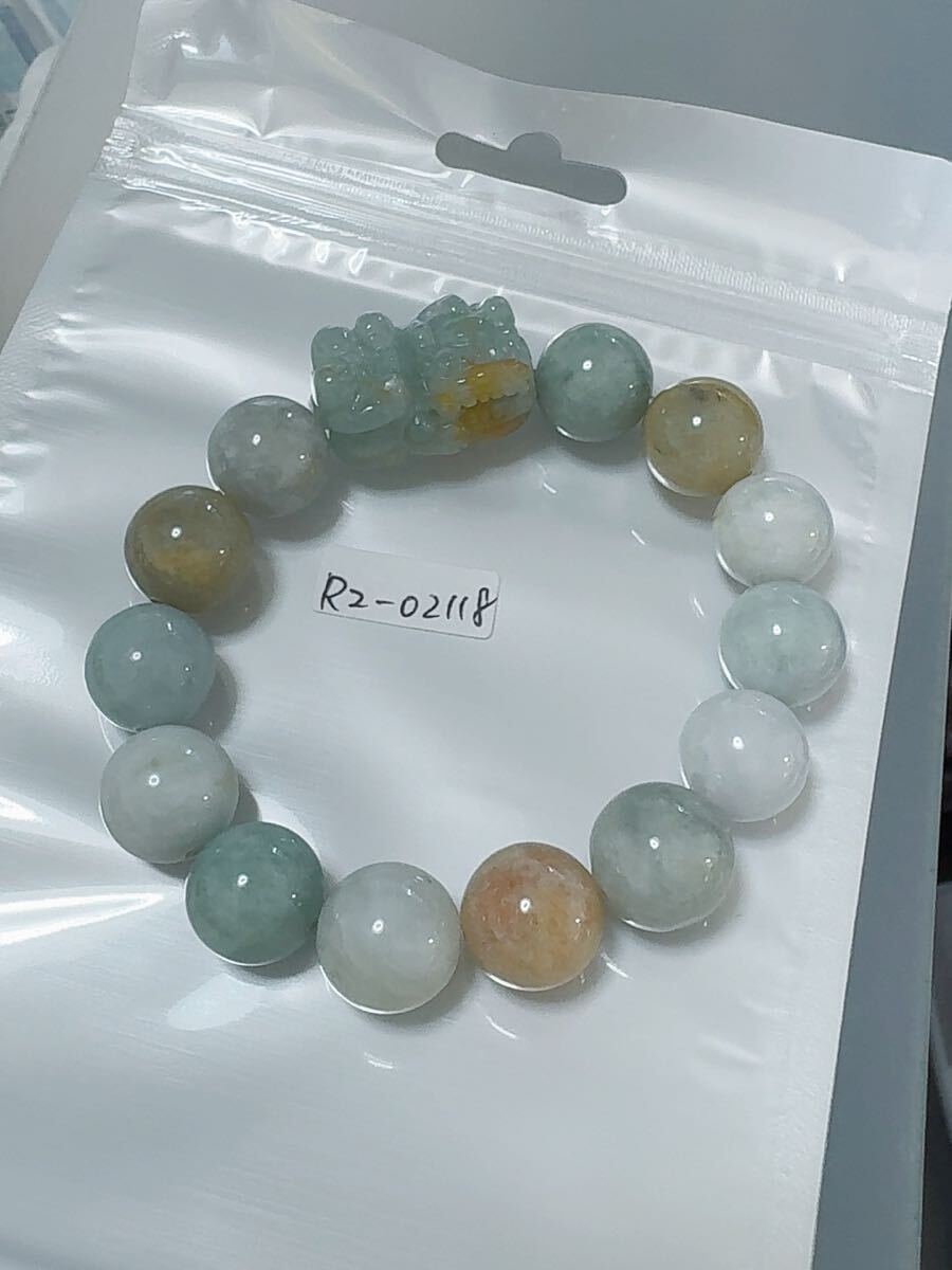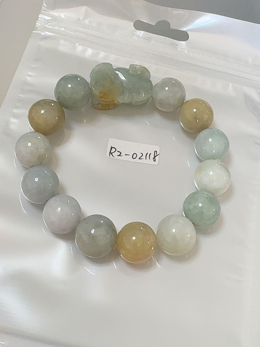 R2-02118天然本翡翠《本物保証》貔貅翡翠ブレスレット17cm 一点物 魔除け 昇進 成功 風水 金運 財運 幸運 幸福 縁起