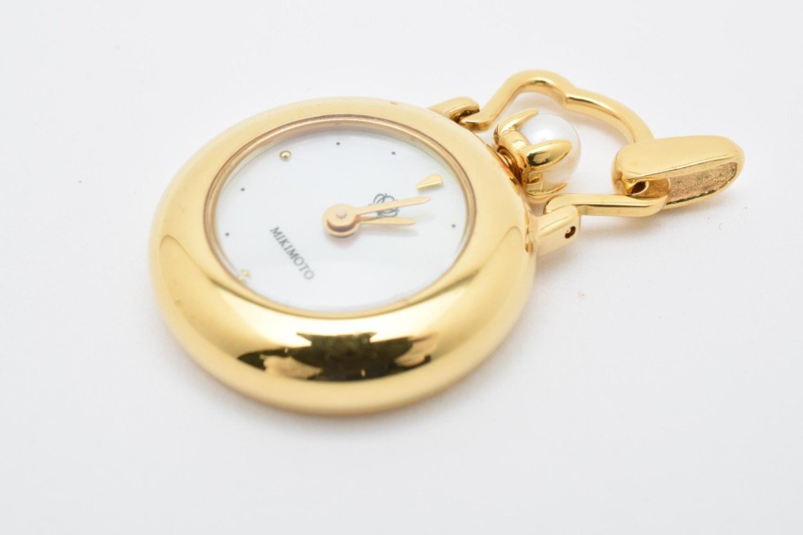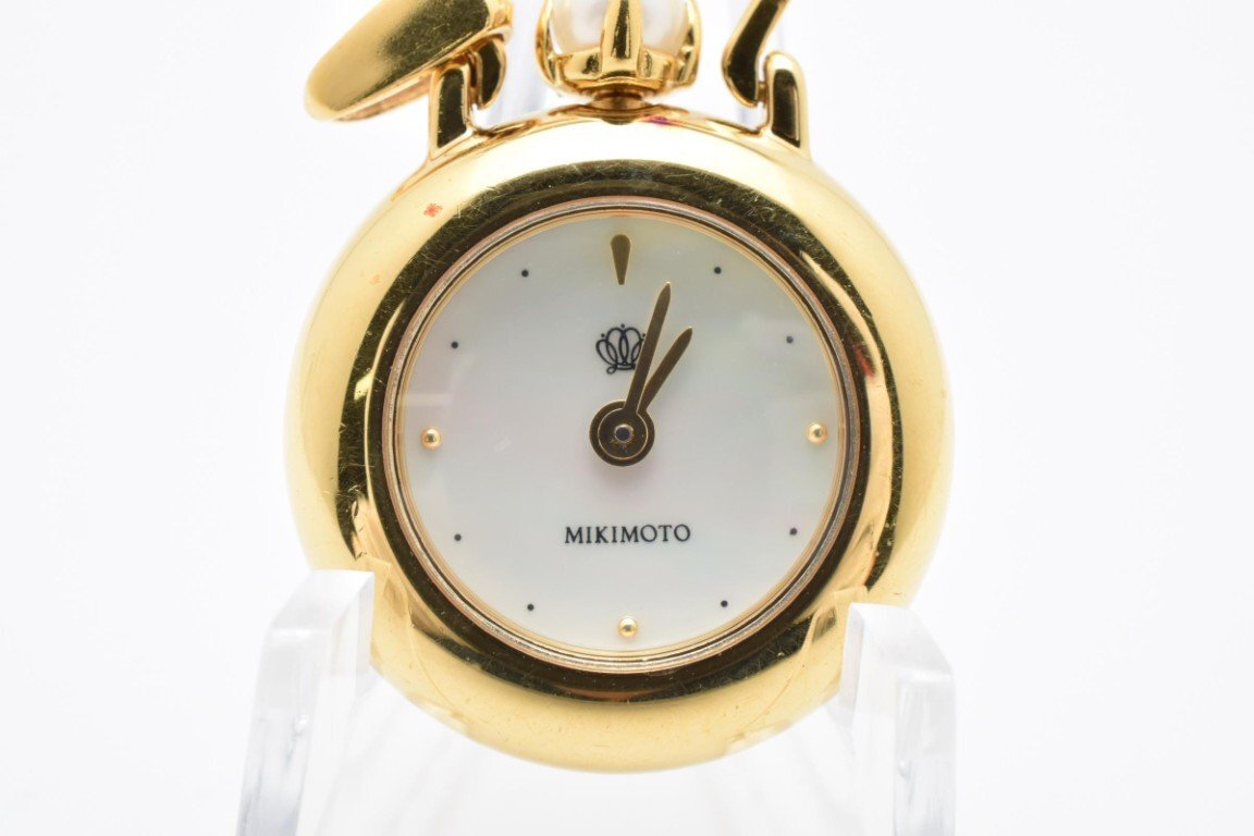 MIKIMOTO NNS-8016PF ネックレス型時計 ゴールド ラウンド シェル文字盤 パール付き 2針 クォーツ