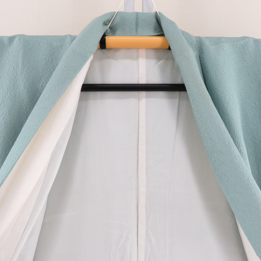 | 色無地 袷 グリーンブルー 紋無し 正絹 広衿 仕立て上がり着物 身丈162cm |