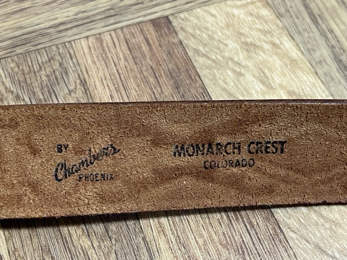 ブランド名 Chambers・全長 90cm(バックル含まず)・幅 3.8cmです。70〜81cmまで調節出来ます。バックルは交換出来ます。バックルに小傷はありますが、ベルト自体はほとんど使用感がなく、とても状態は良いです。