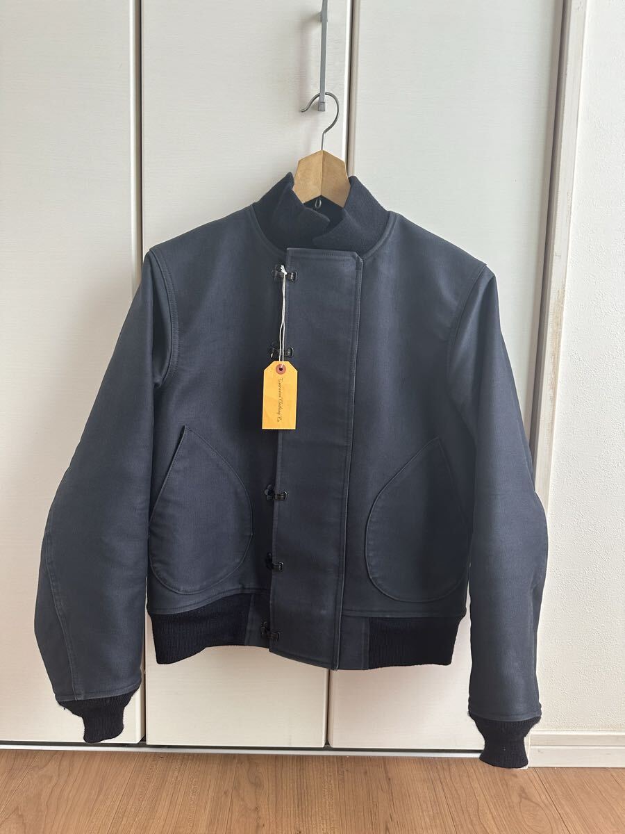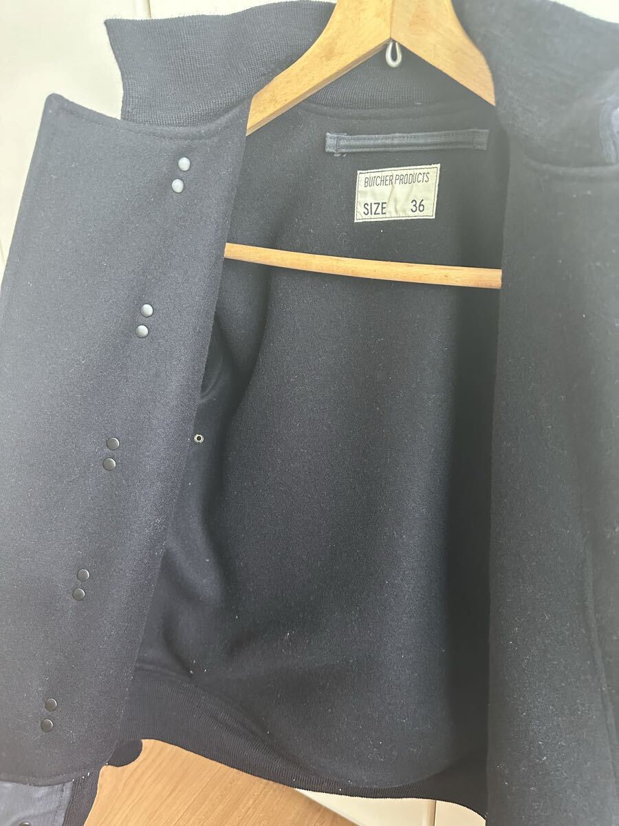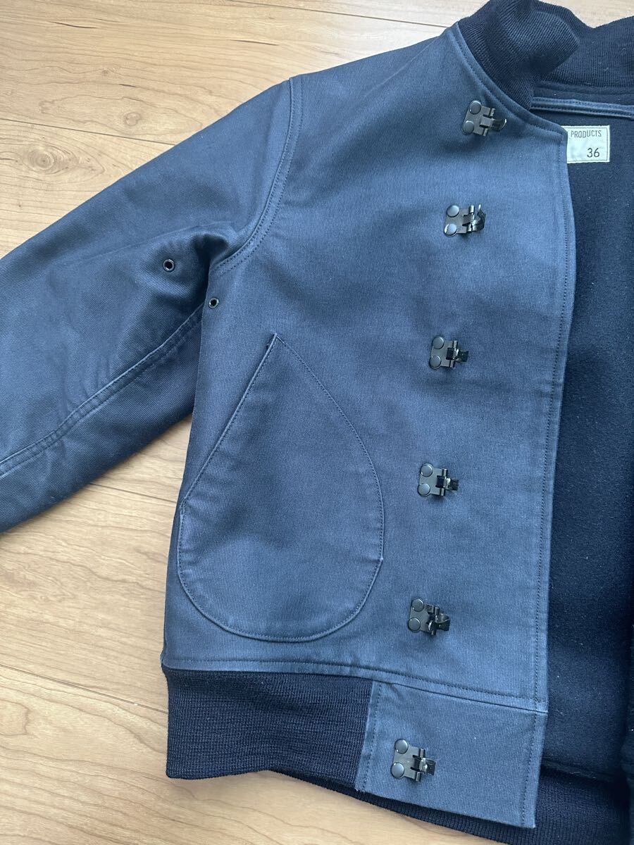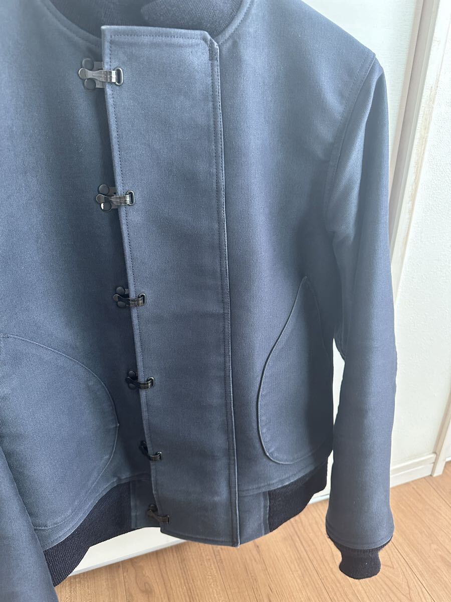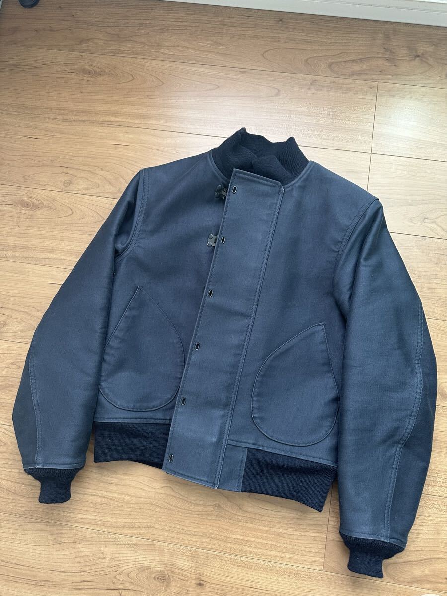 Timeworn clothing で購入した Butcher products の DECK JACKET TYPE - HOOK の出品です。サイズは36、実寸は肩幅約45cm,身幅約51cm,総丈約66cmです。色はネイビーです。購入当時は気に入って着用していたため、擦れやあたり等はありますがまだまだタフに着用可能です。留め具の金属部分にも削れが見受けられます。ライニングは袖までウールが貼られております。(毛玉あり)ブランド創成期から現在まで人気のデッキジャケットです。昨今もコレをベースにして、カスタマイズやアップデートしたジャケットがリリースされています。ブランド的にもレアで何よりもかなり格好良いジャケットです。全国送料無料です。写真のオレンジ色のプライスタグもお付け致します。USEDのお品につきノークレーム、ノーリターンで宜しくお願い致します。