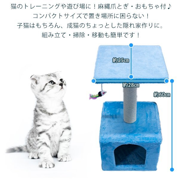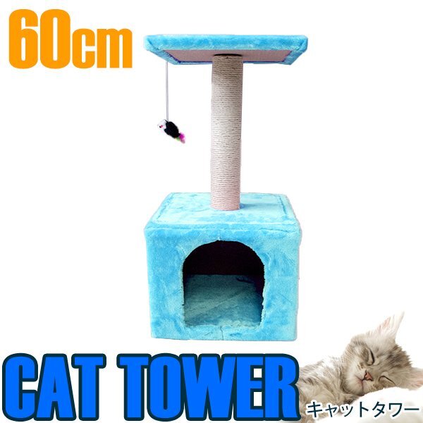【新品即納】キャットタワー 高さ60cm スカイブルー 据え置き ネコハウス コンパクト 運動不足 爪磨き 遊び場や隠れ家として最適♪ 置き型