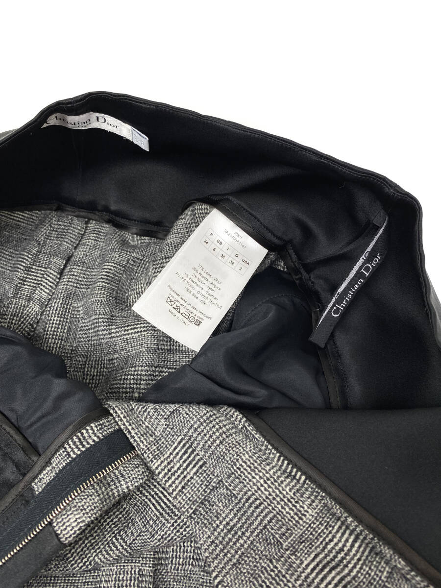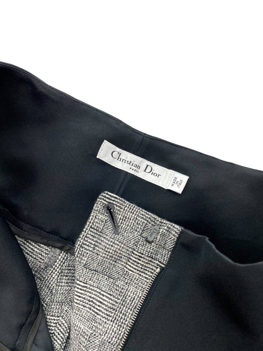 【クリスチャンディオール Christian Dior】 パンツ ウール グレンチェック シルク 切替 ハイウエストブラック ホワイト size I 38 レディース | |
