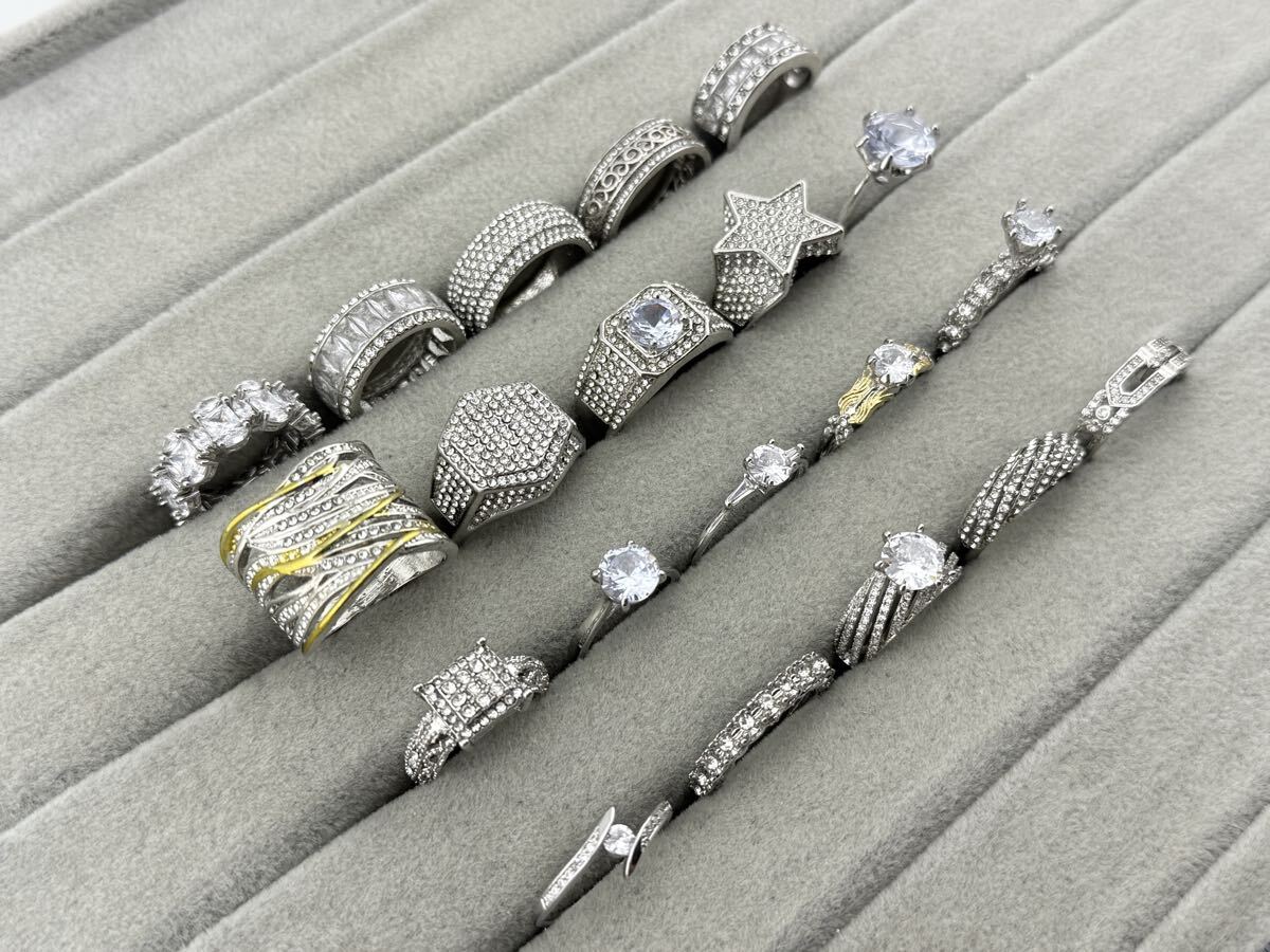 天然石、ジルコニア 、カラーストーン、色ガラス、ゴールド、シルバー、ステンレス、真鍮など様々です。