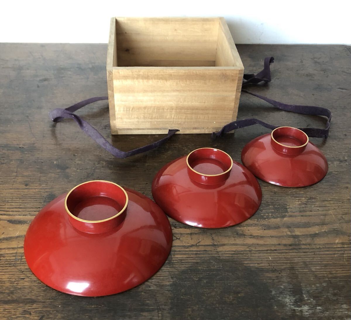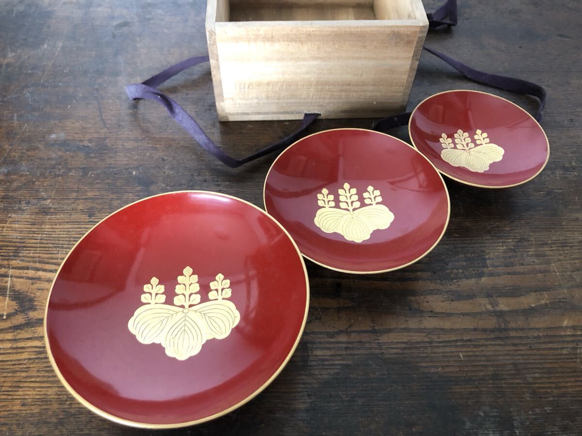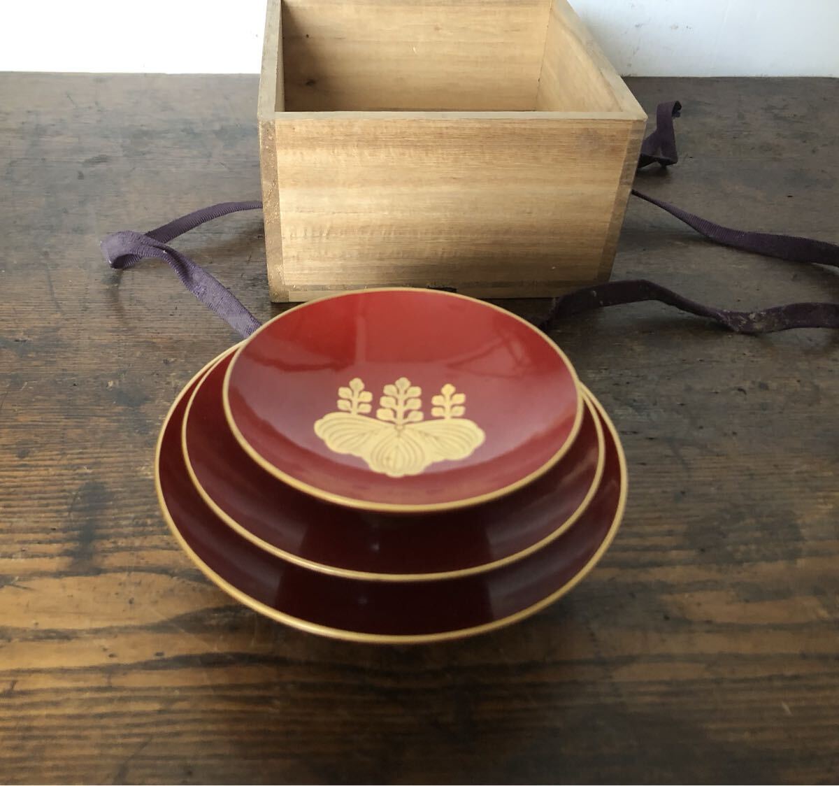 商品名 : 漆器 盃/ 杯/三つ組/五七の桐紋/厚生労働大臣/ 酒器/ 木箱/蓋なし
