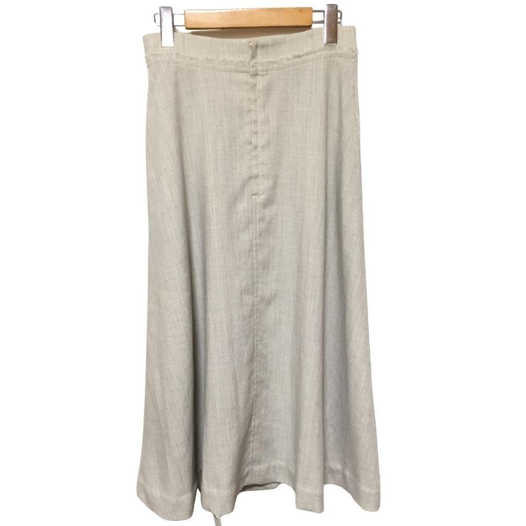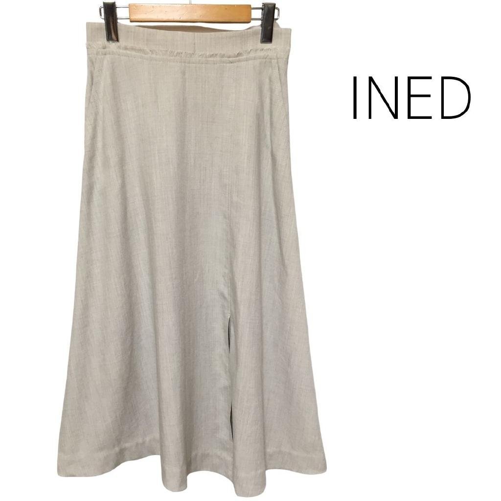 【送料込】 INED イネド スカート ベージュ フレアラインロングスカート 左前深めスリット ウエストフリンジ付 size7号 S キャリア/973278