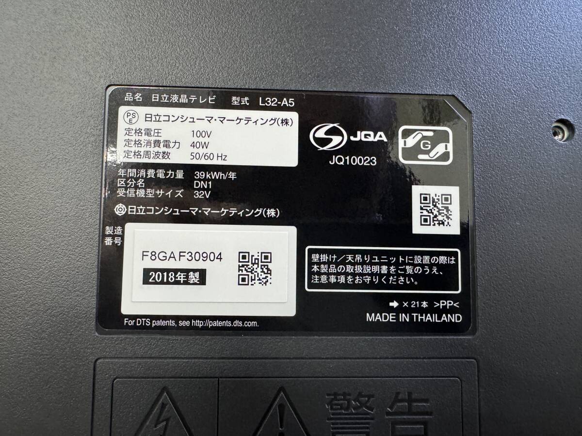 状態綺麗 未使用に近い 32型 日立 Wooo LED 液晶テレビ 2018年製 L32-A5 管理番号F1477