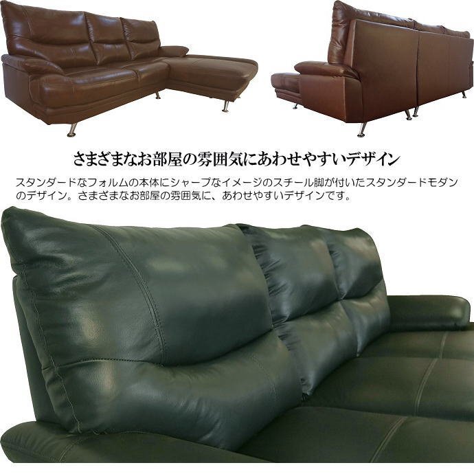 | 【商品名】 | オイル仕上げ本革張スタンダードモダン3人掛ハイバックカウチソファー (キャメル色・左カウチタイプ) |