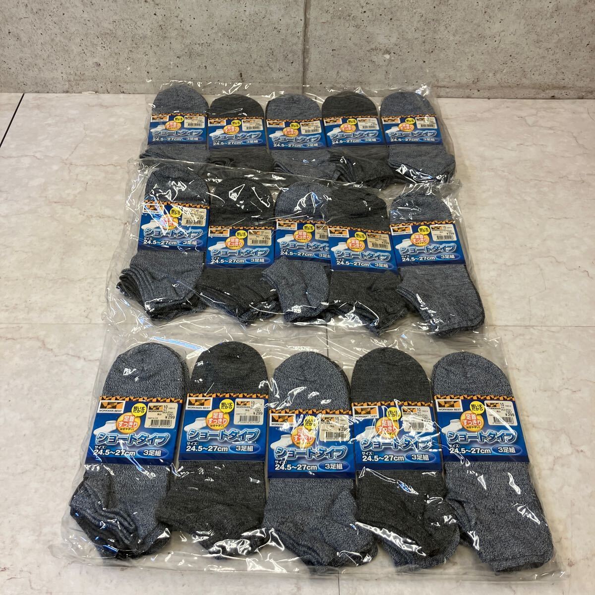 送料格安 靴下 ソックス セット くつ下 24.5〜27cm ショートタイプ 3足組×15 45足セット まとめ売り ワークマン グレー