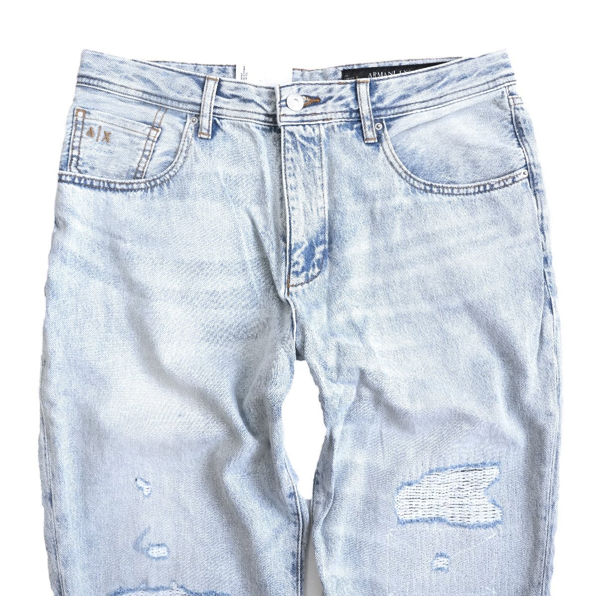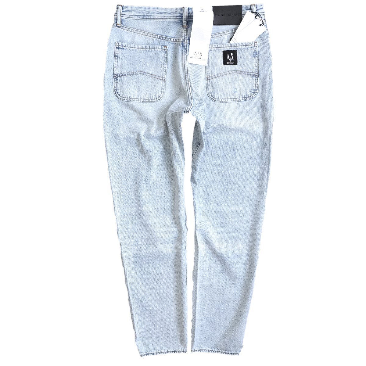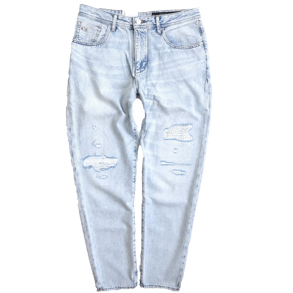 ◆新品◆アルマーニ◆お洒落度上がる 抜け感と脚長効果もたらす クラッシュ 味出し 淡青 テーパード キャロット デニム 31◆ARMANIEXCHANGE